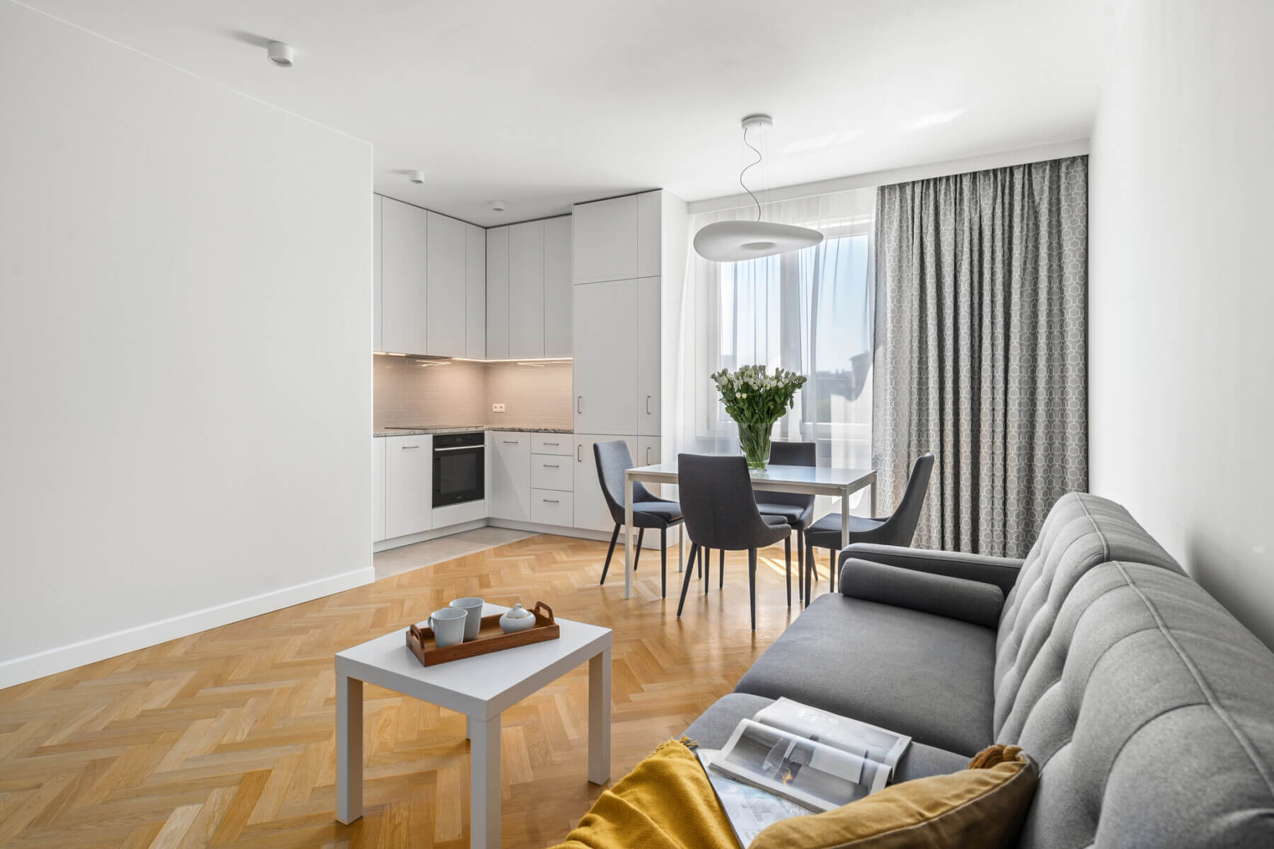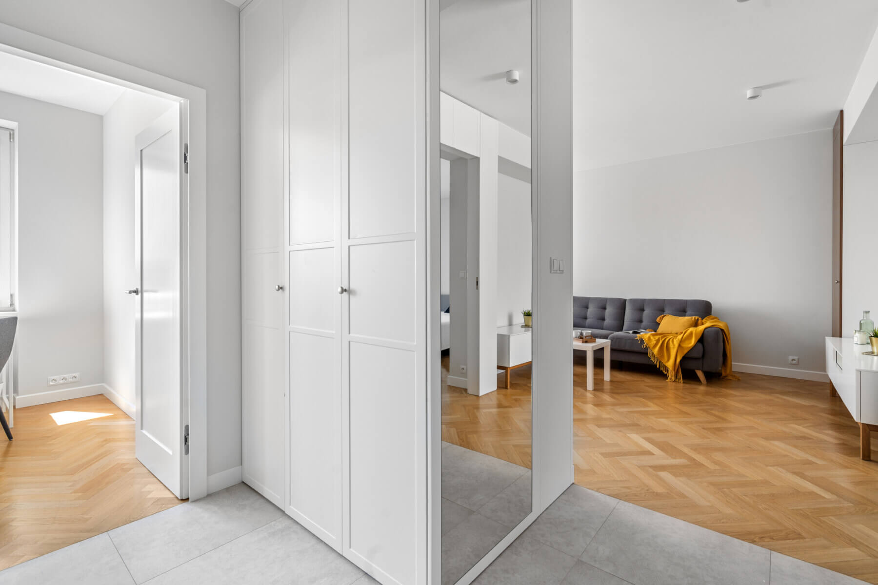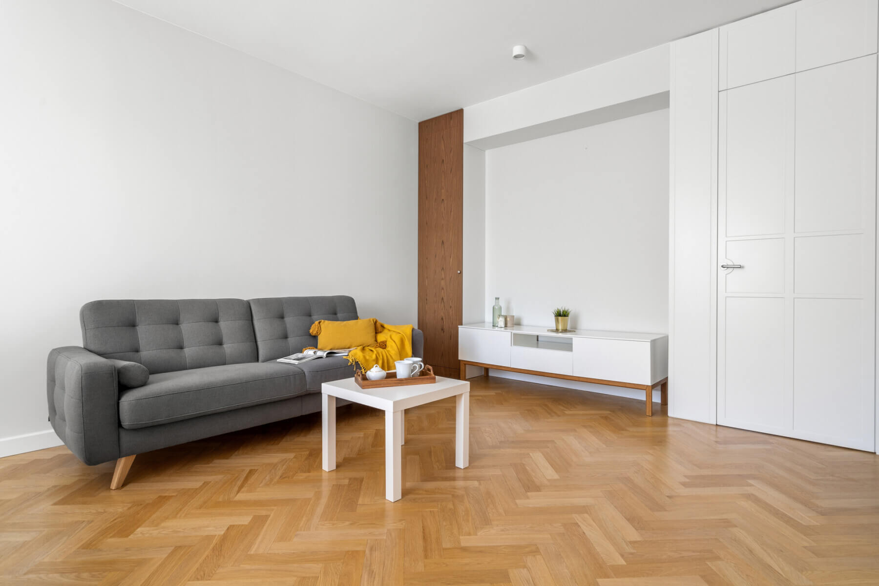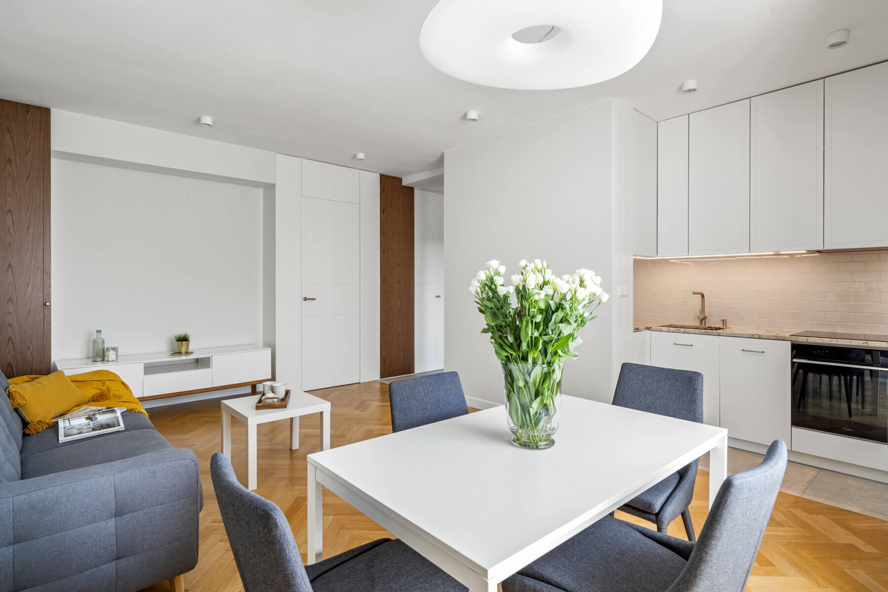It was designed by an architect to keep the space in it, and at the same time create a perfect place to live. The apartment is equipped with plenty of wardrobes and lockers that do not take up any space.