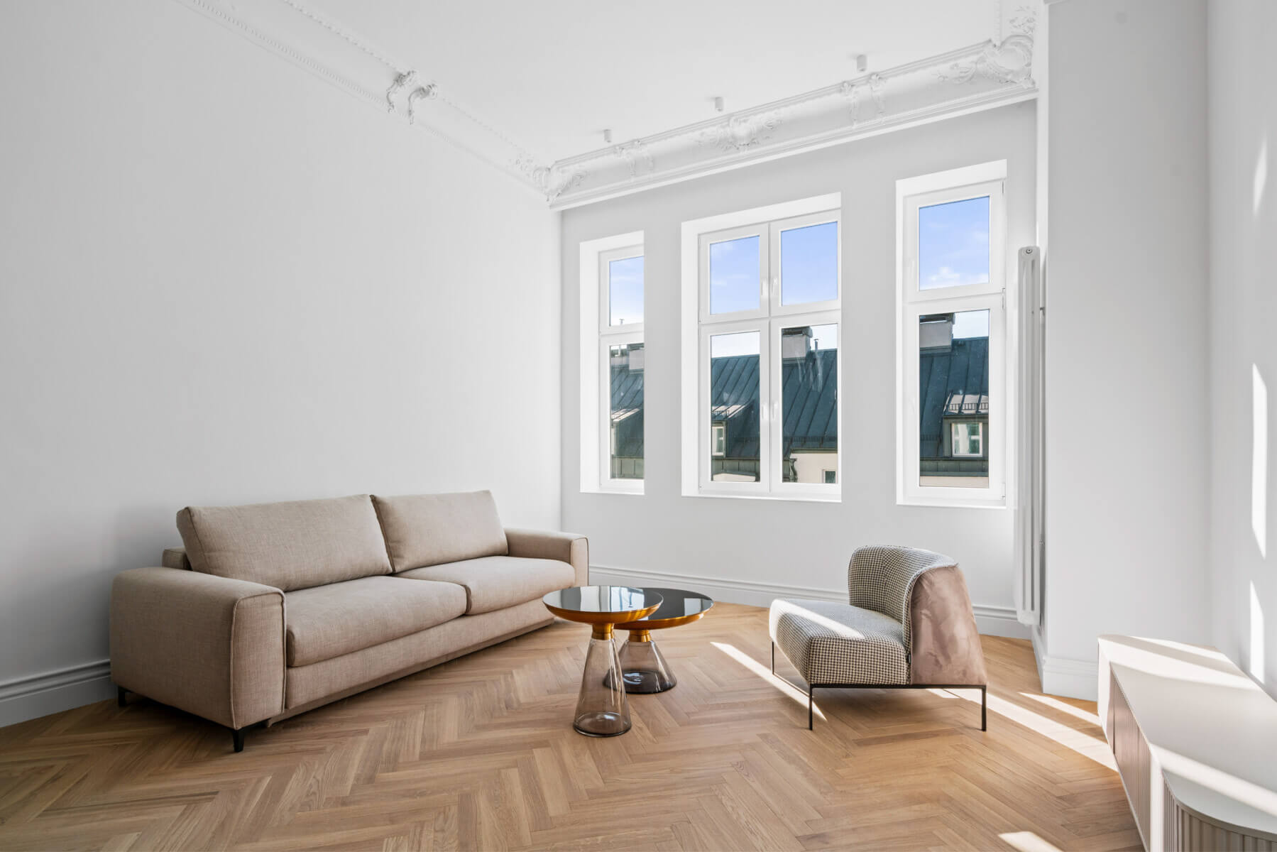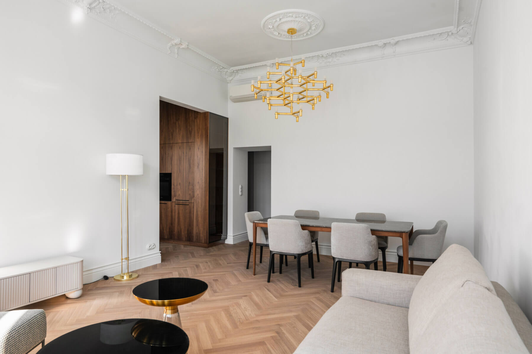 A perfectly thought-out, modern interior in an elegant style with elements of pre-war character.