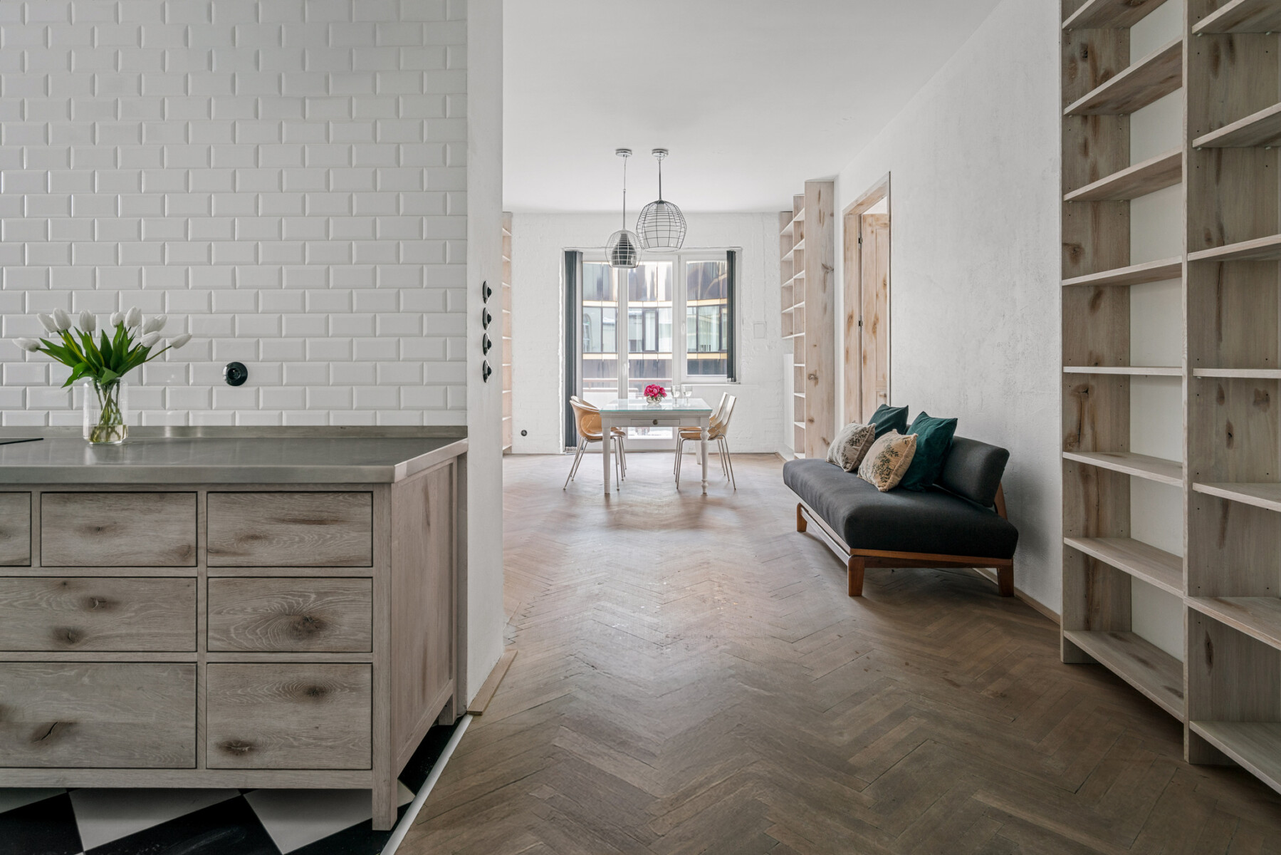 The apartment is located on the fourth and top floor of a modernist tenement building with an elevator, built in the 1930s, on Mokotowska Street. The apartment has been meticulously finished with attention to every detail, featuring high-quality built-in furniture, kitchen appliances from renowned brands, stylish bathroom fixtures, and lighting. A key feature of the property is its ceiling height of over 3 meters, emphasizing the exceptional space of the apartment.
