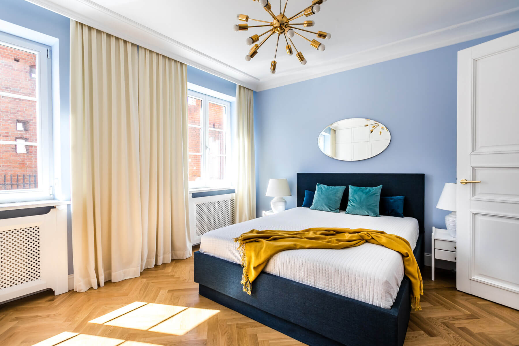 Apartment in a beautiful tenement house at Rycerska Street in the Old Town. The modern interior captivates with elegance and a cozy character. People looking for a quiet place will certainly appreciate the vicinity of charming tenements, green surroundings and the unique atmosphere of this place.