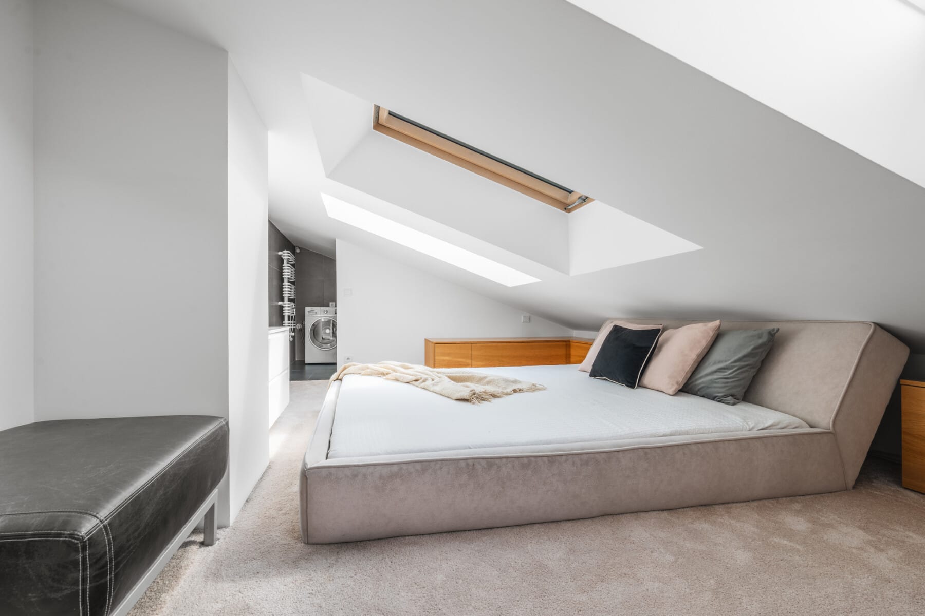 Master bedroom: Located on the second level of the apartment, adding to its intimate character. It features a large, comfortable bed, built-in wardrobes, and access to a walk-in closet.