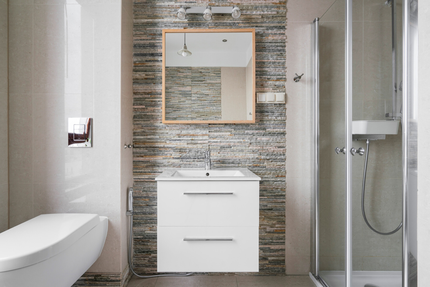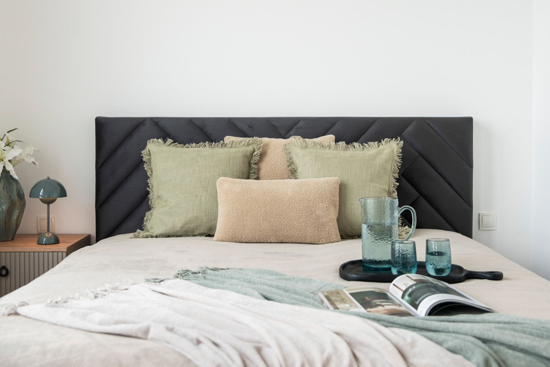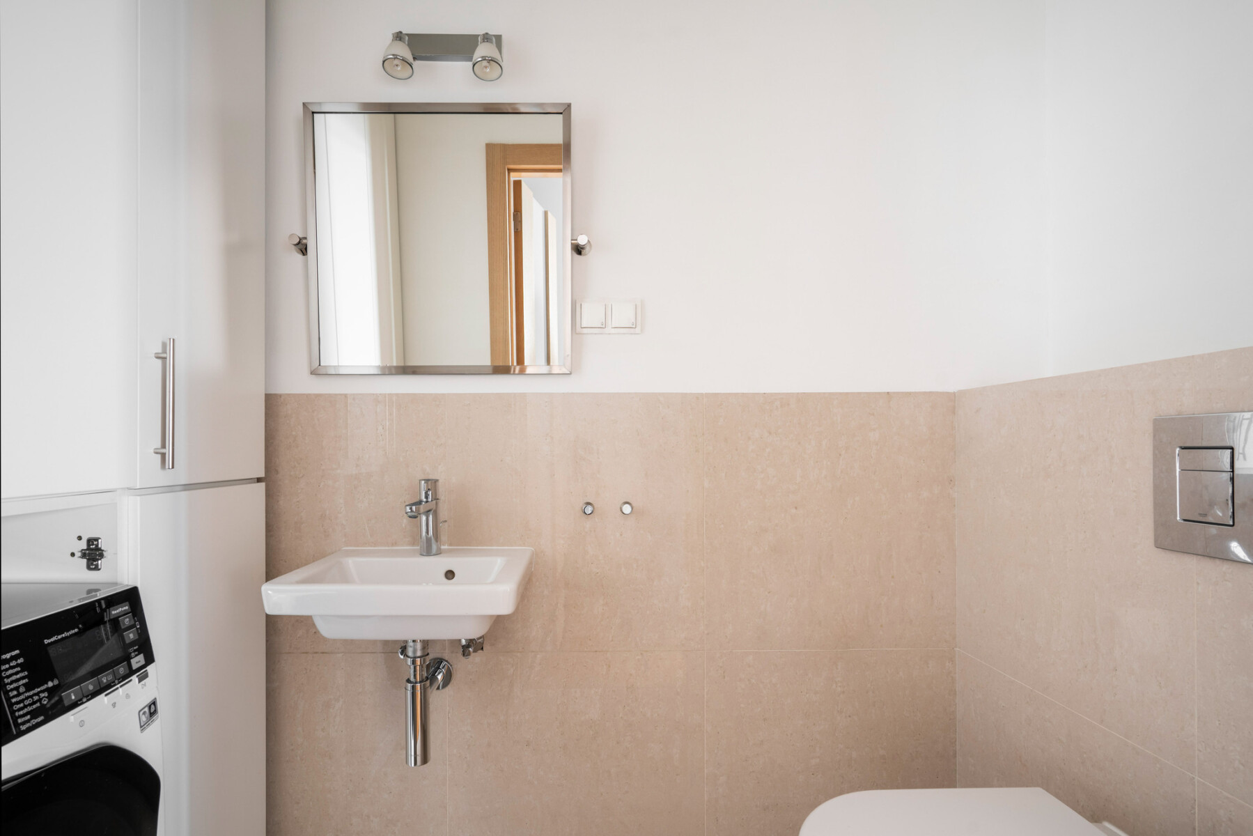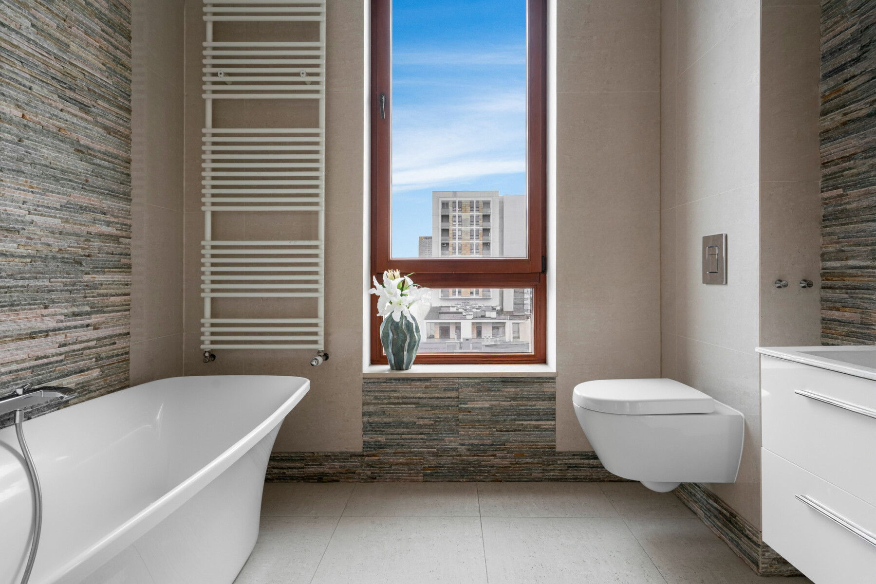 The functional layout of the 100 m2 apartment introduces a natural division into living and private areas.