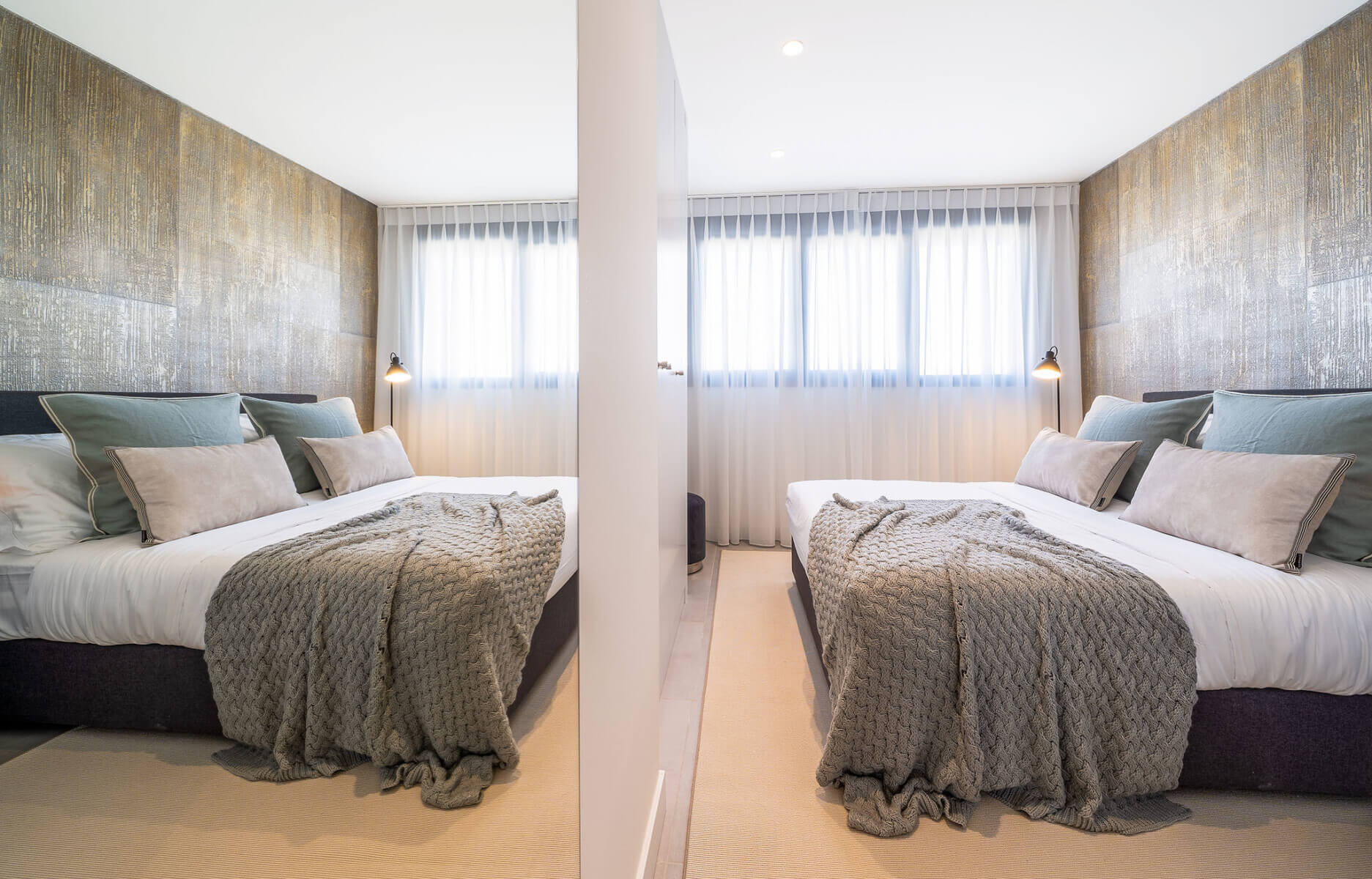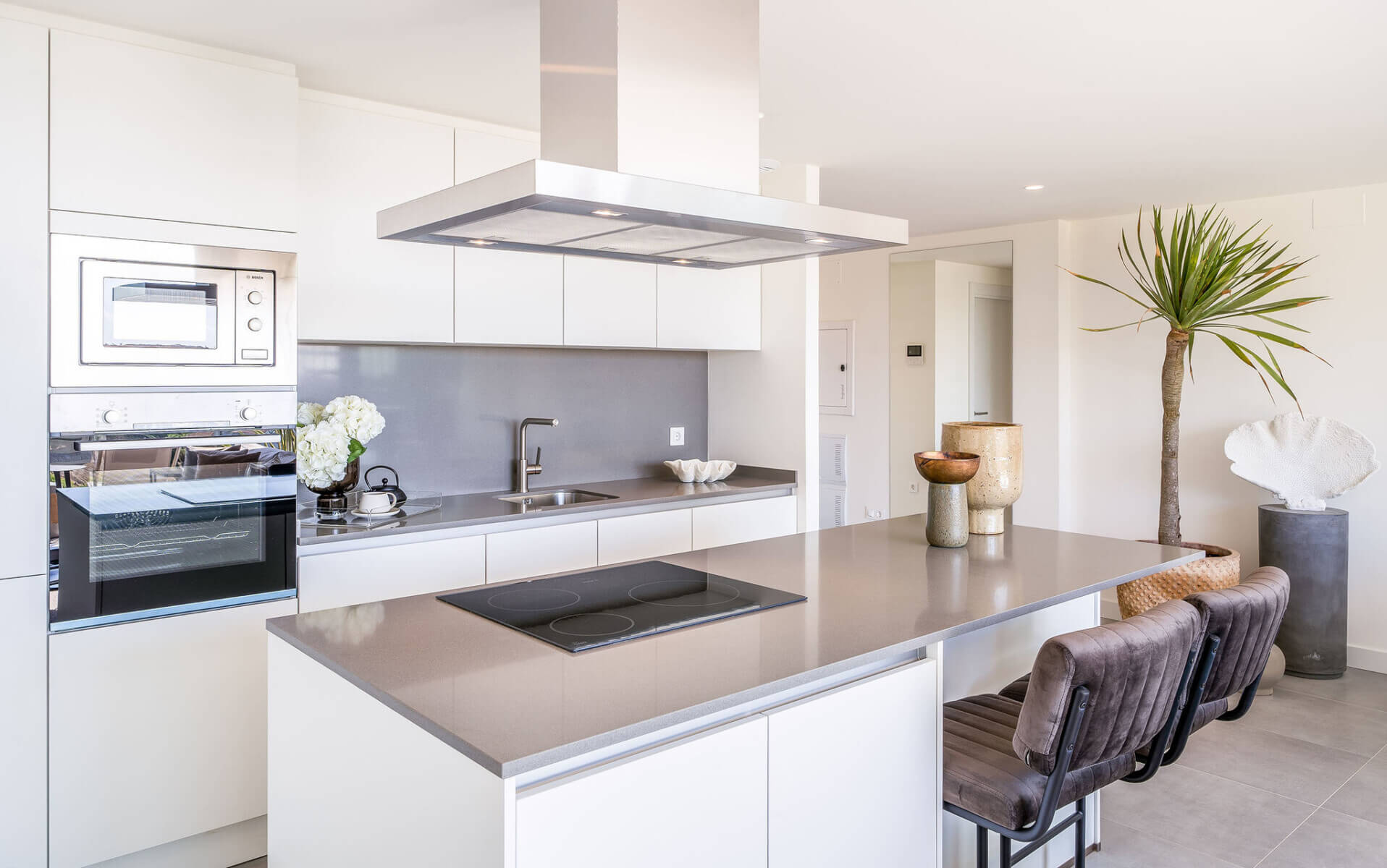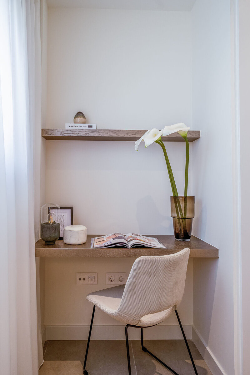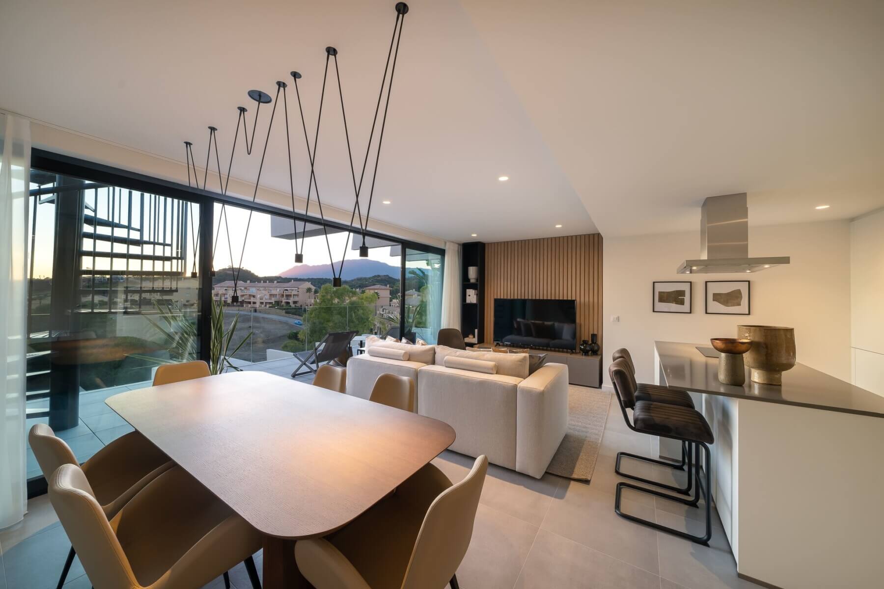 The penthouses in Osis 325 have a panoramic view of Estepona and the surrounding Selwo Natural Park. The glazed balustrades of the terraces and the solarium allow natural sunlight and lush vegetation to enter the interior, blurring the boundary between the outside and inside.
