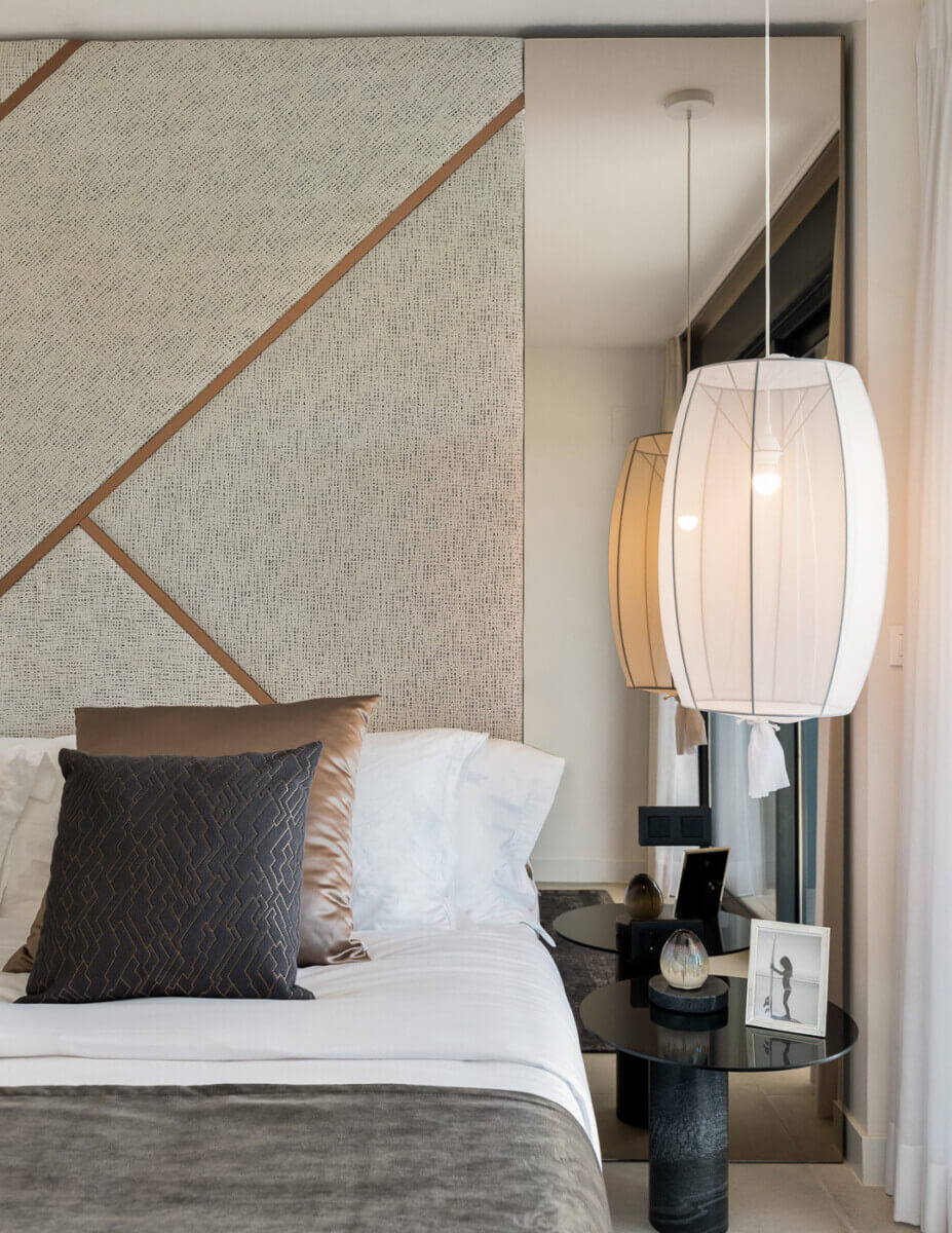 The penthouses in Oasis 325 have a panoramic view of Estepona and the surrounding Selwo Natural Park. The glazed balustrades of the terraces and the solarium allow natural sunlight and lush vegetation to enter the interior, blurring the boundary between the outside and inside.