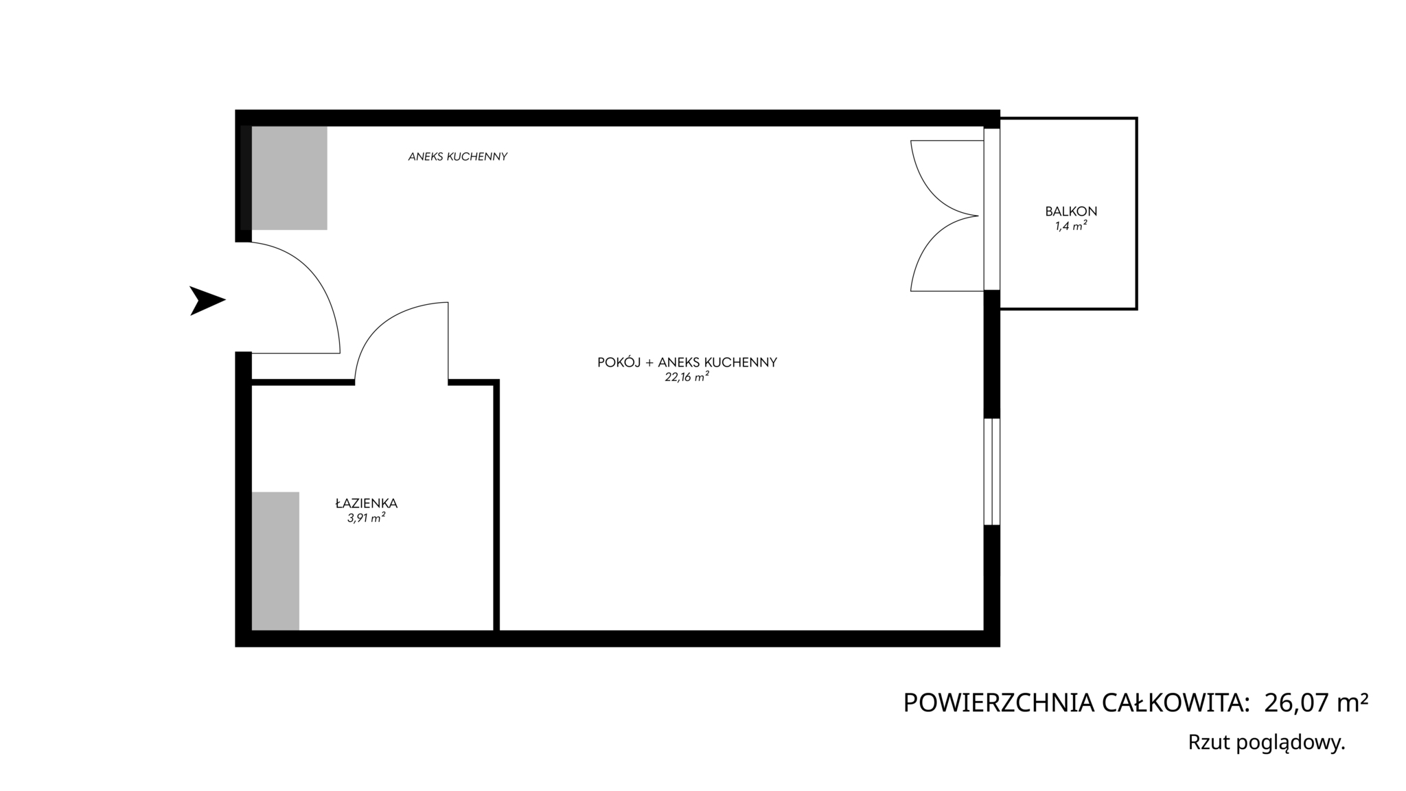 – Living room with kitchenette: 22.16 m²