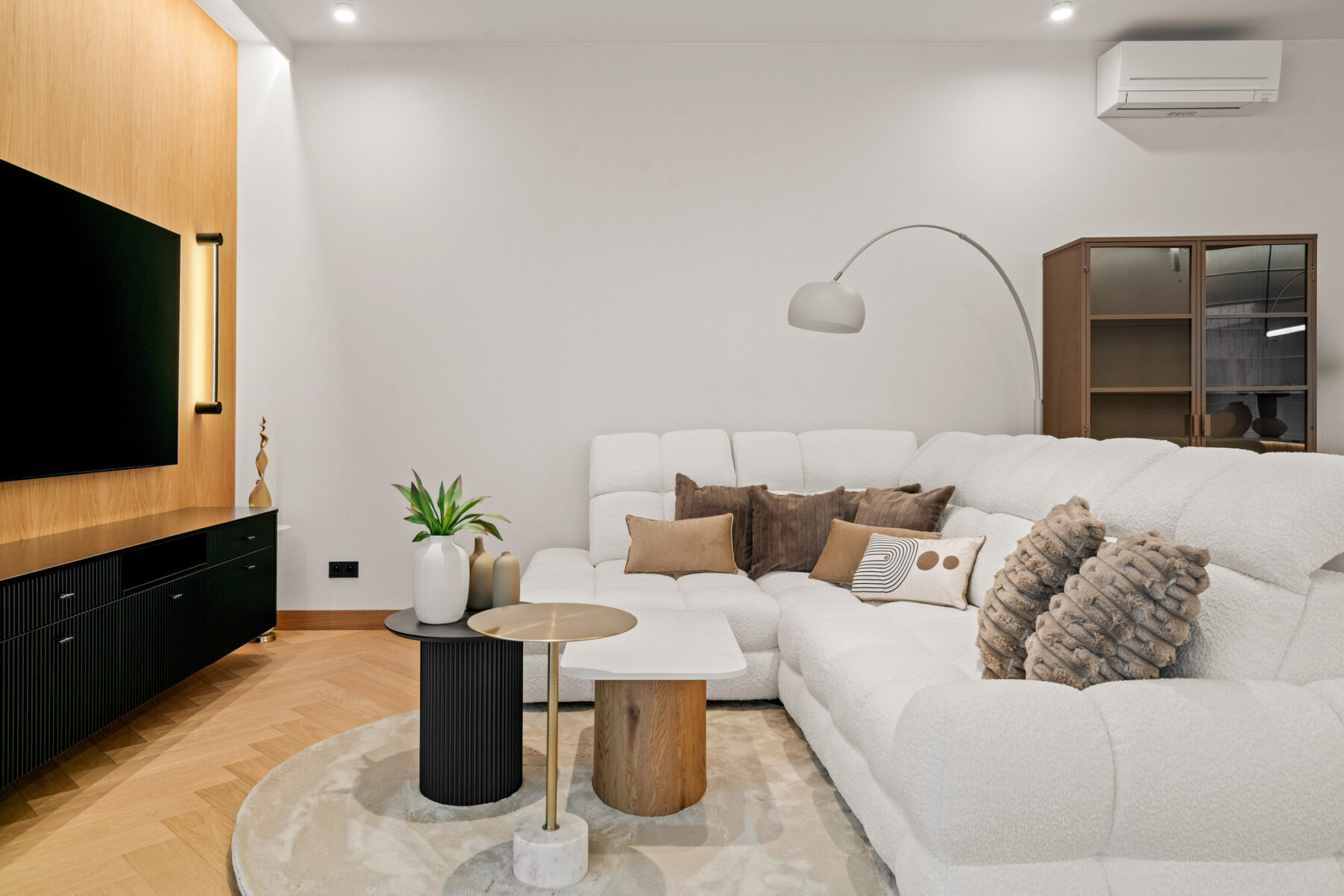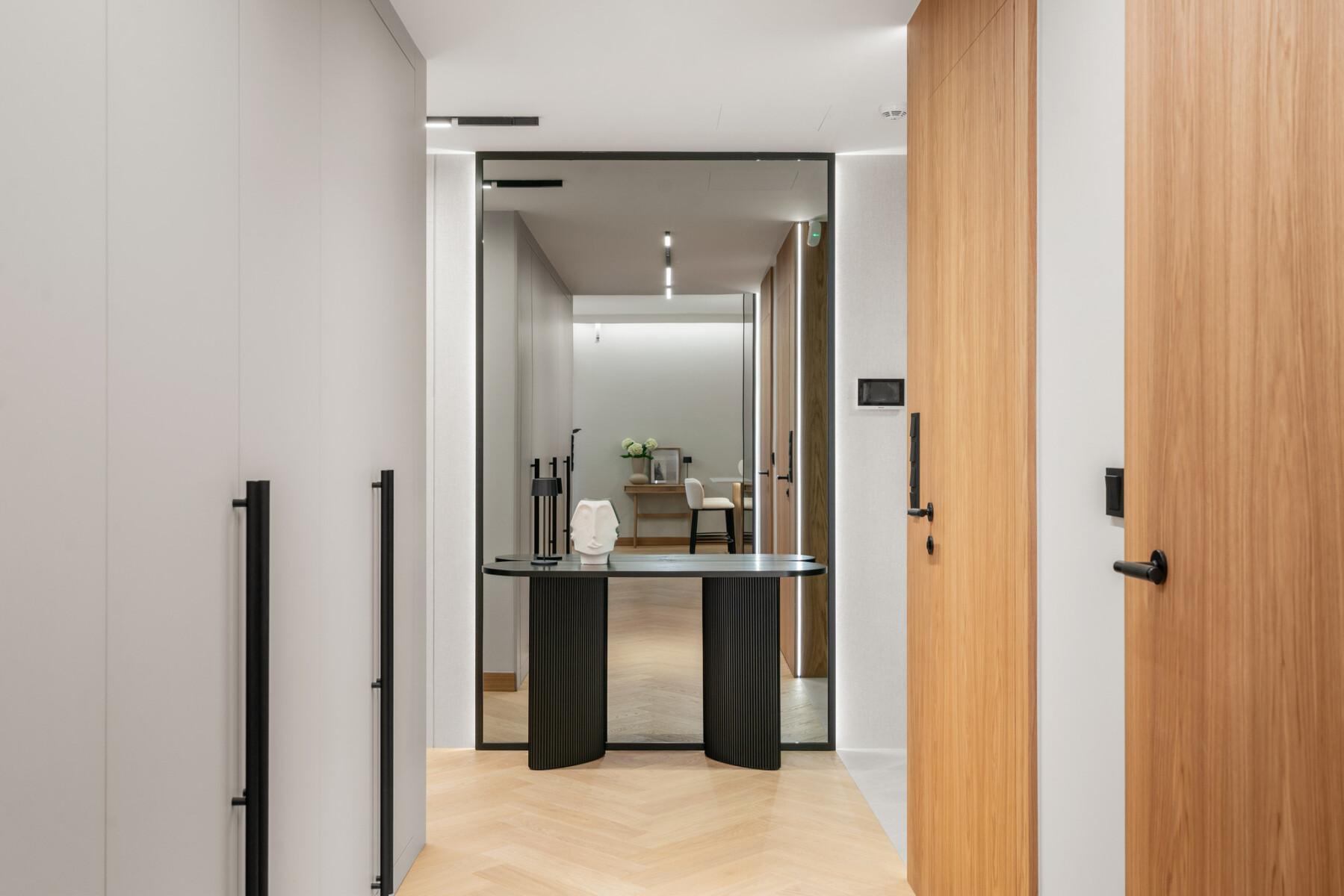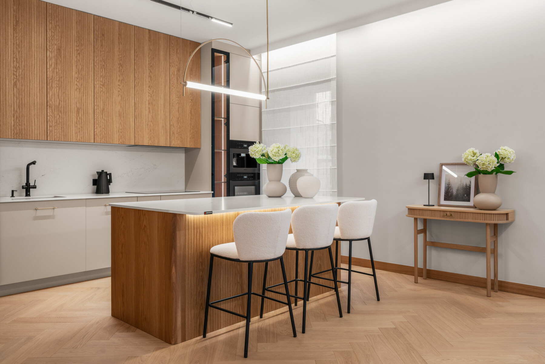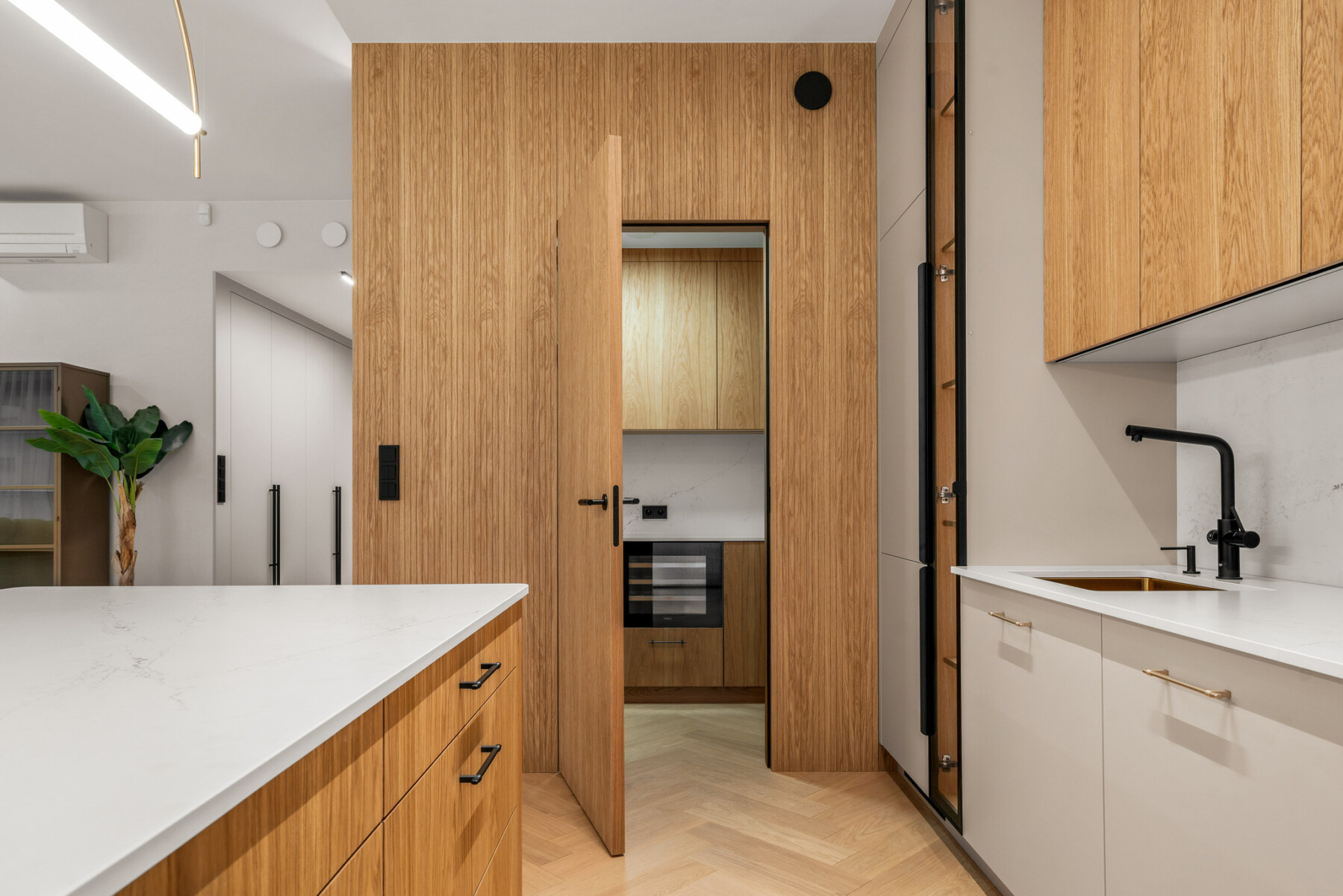 The apartment has a central air conditioning, recuperation and purification system, ensuring clean air and optimal indoor temperature all year round. Top quality wooden windows have been installed, and large glazing provides plenty of natural light. The premises are also prepared for the installation of an intelligent smart home system.