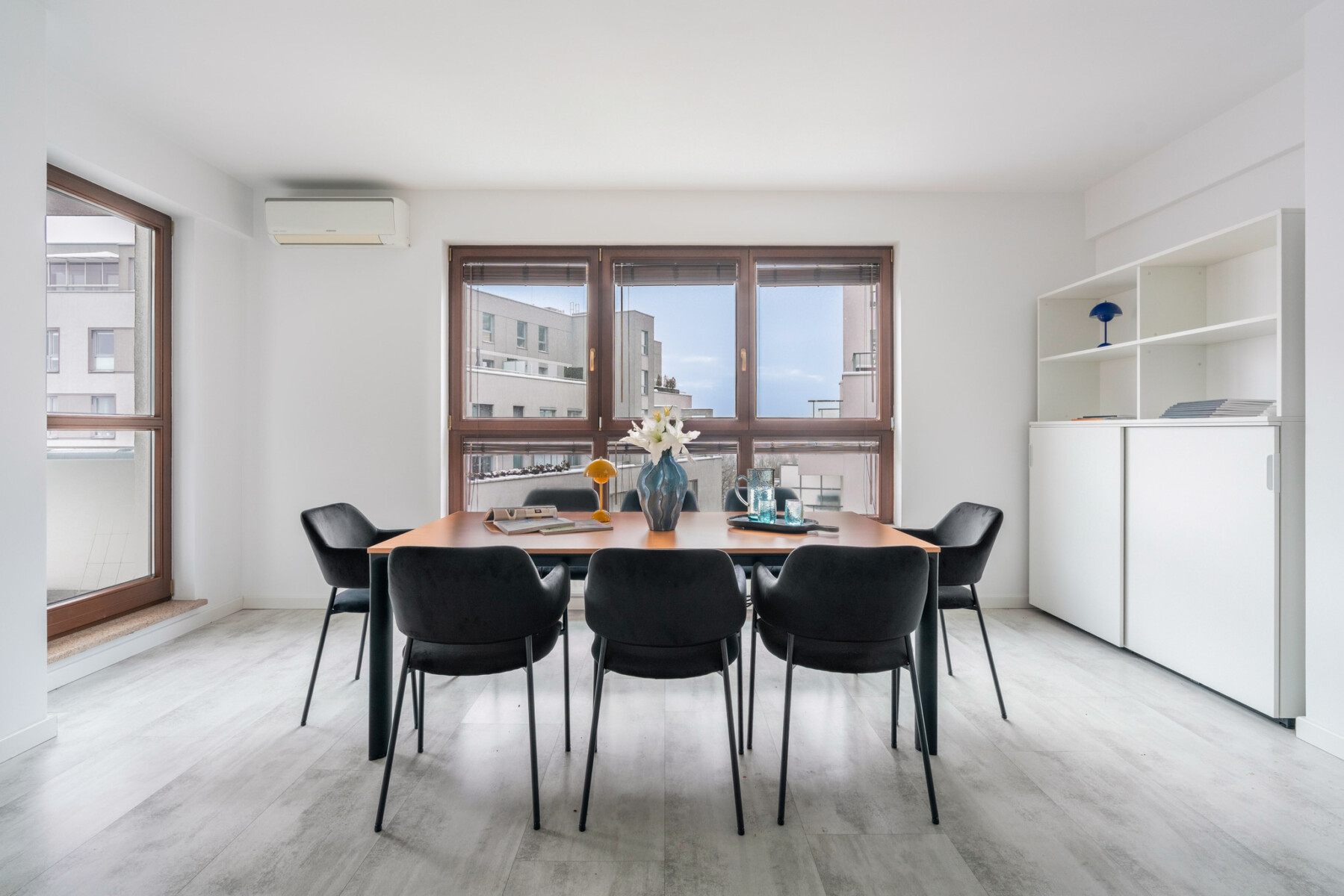 The apartment comes with 2 parking spaces in the underground garage and 3 storage units at an additional price of PLN 200,000.