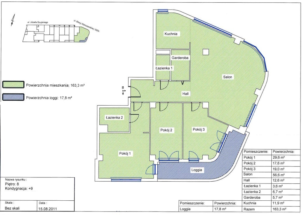 – a spacious and sunny living room with floor-to-ceiling windows and a unique view of Warsaw,