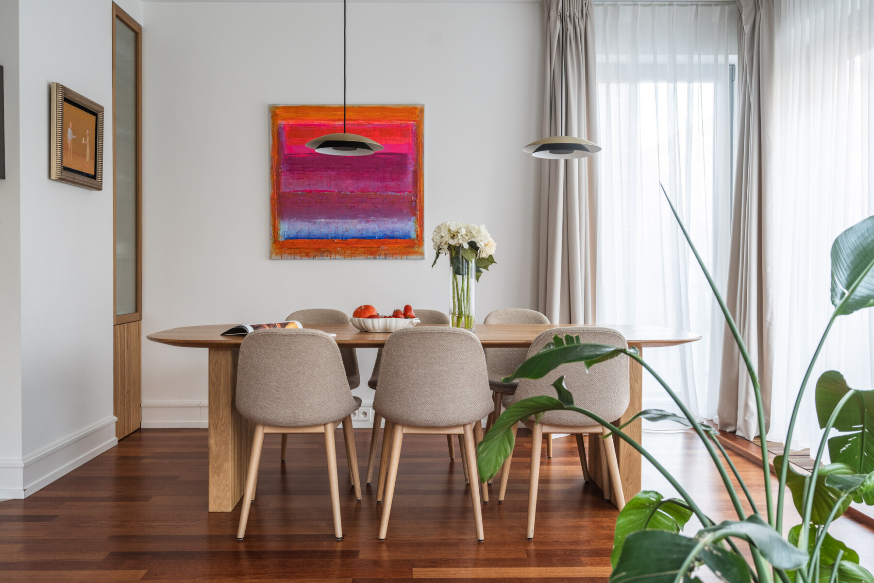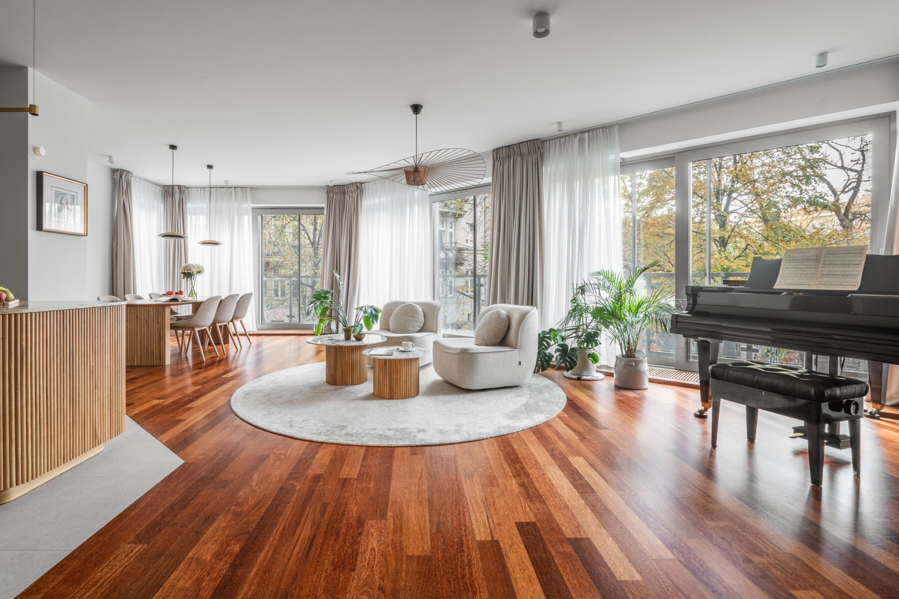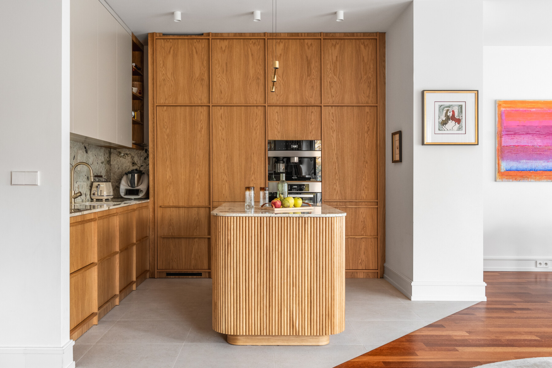 This elegant property in the Japandi style with a living area of over 65 m2 will delight anyone who likes spacious and atmospheric interiors, and the panoramic windows and view of the park will soothe after a day full of impressions.