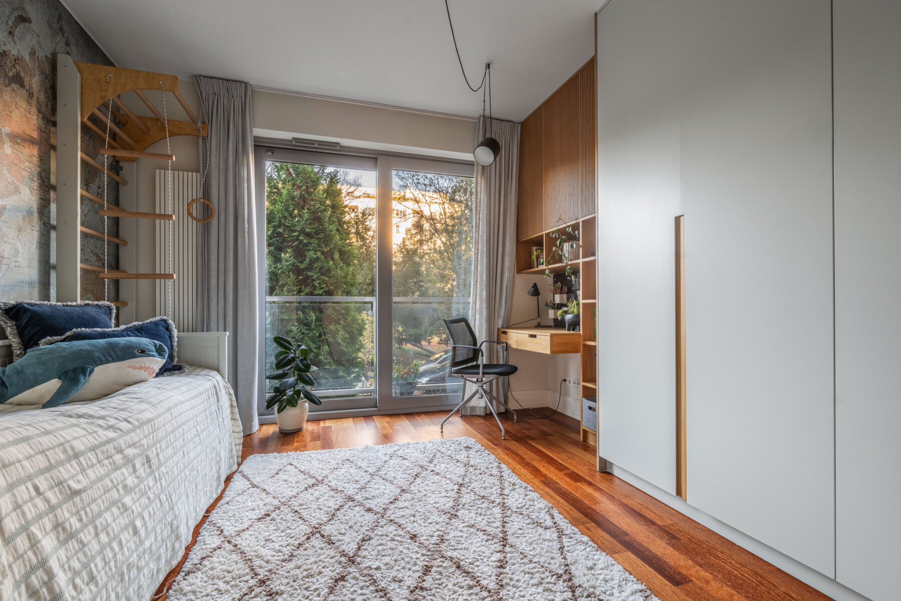 A property where on an area of approx. 183 m2 there was space for a spacious functional living room, a kitchen with an island open to the dining room, in which a table for 8-10 people and 4 bedrooms and a study can easily fit, is a rarity on the premium market.