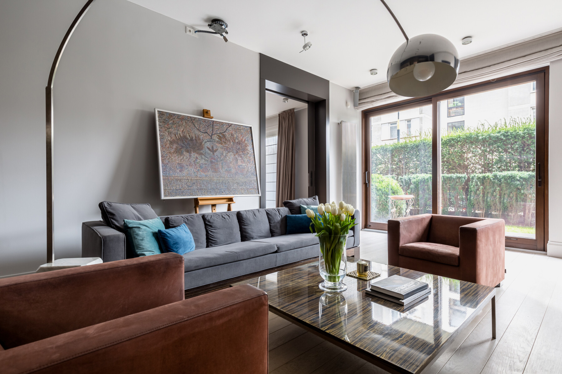 – a stylish living room with a terrace,
