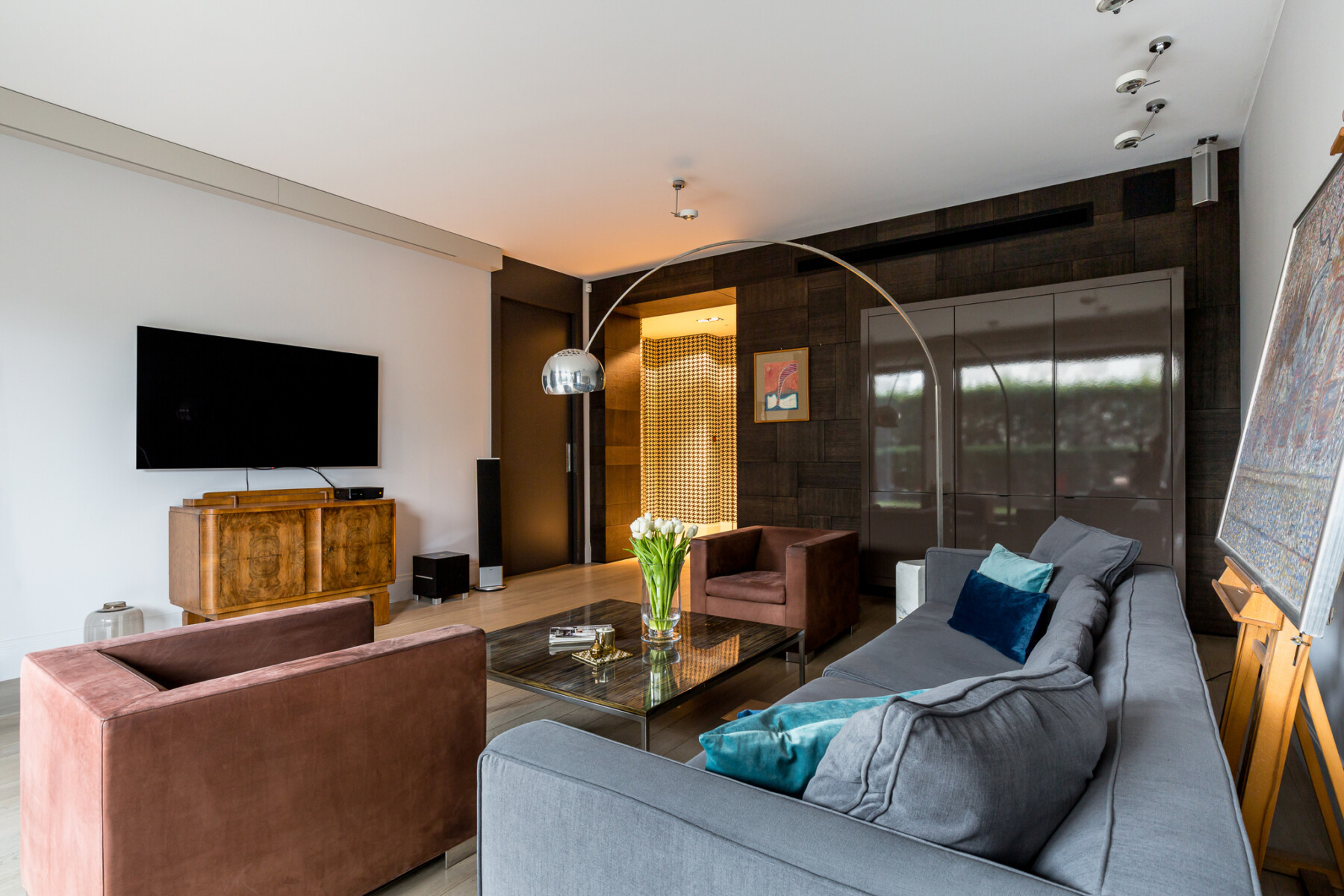 An exclusive, modern apartment, finished to the highest standard, located in one of the most prestigious apartment buildings in Warsaw. right next to the Royal Łazienki Park. Its location ensures privacy, intimacy and proximity to the center of Warsaw.