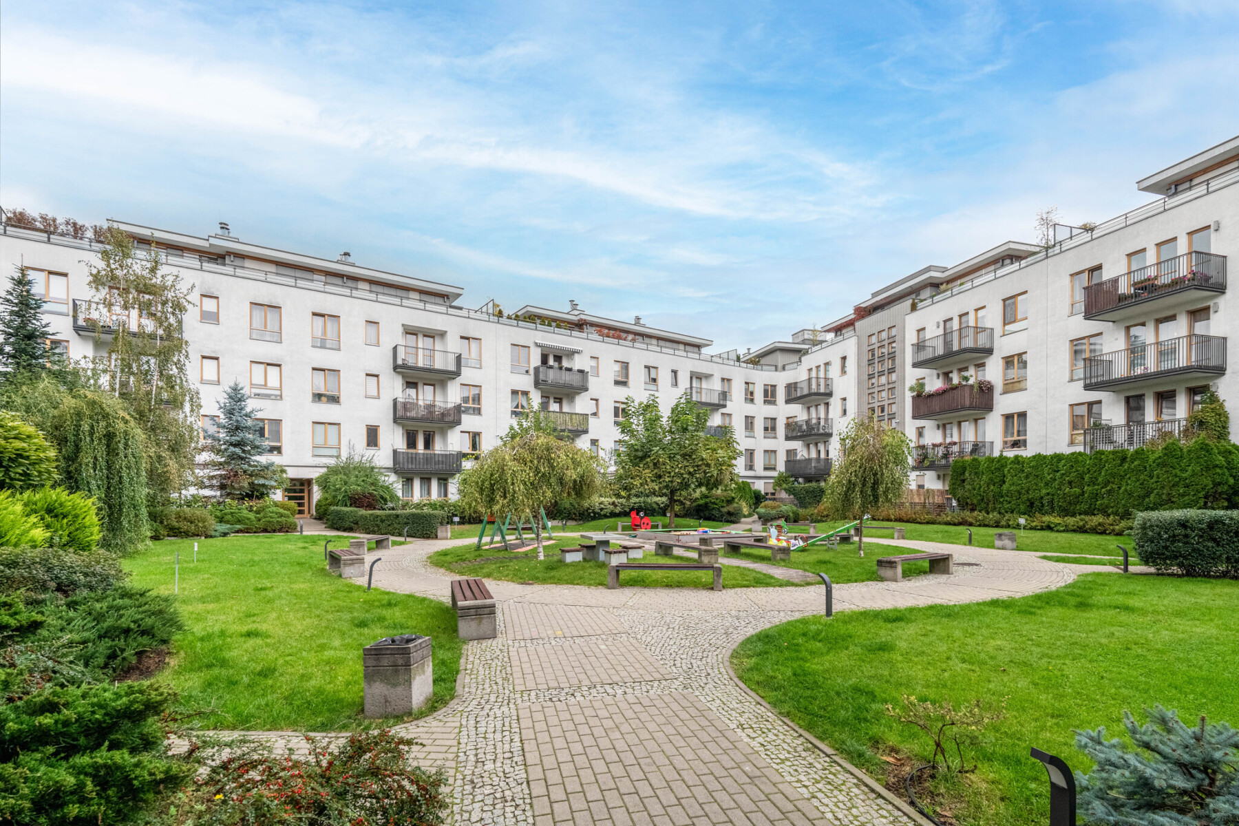 The development includes a carefully maintained green patio and a playground for children – an ideal place to relax and spend time outdoors.