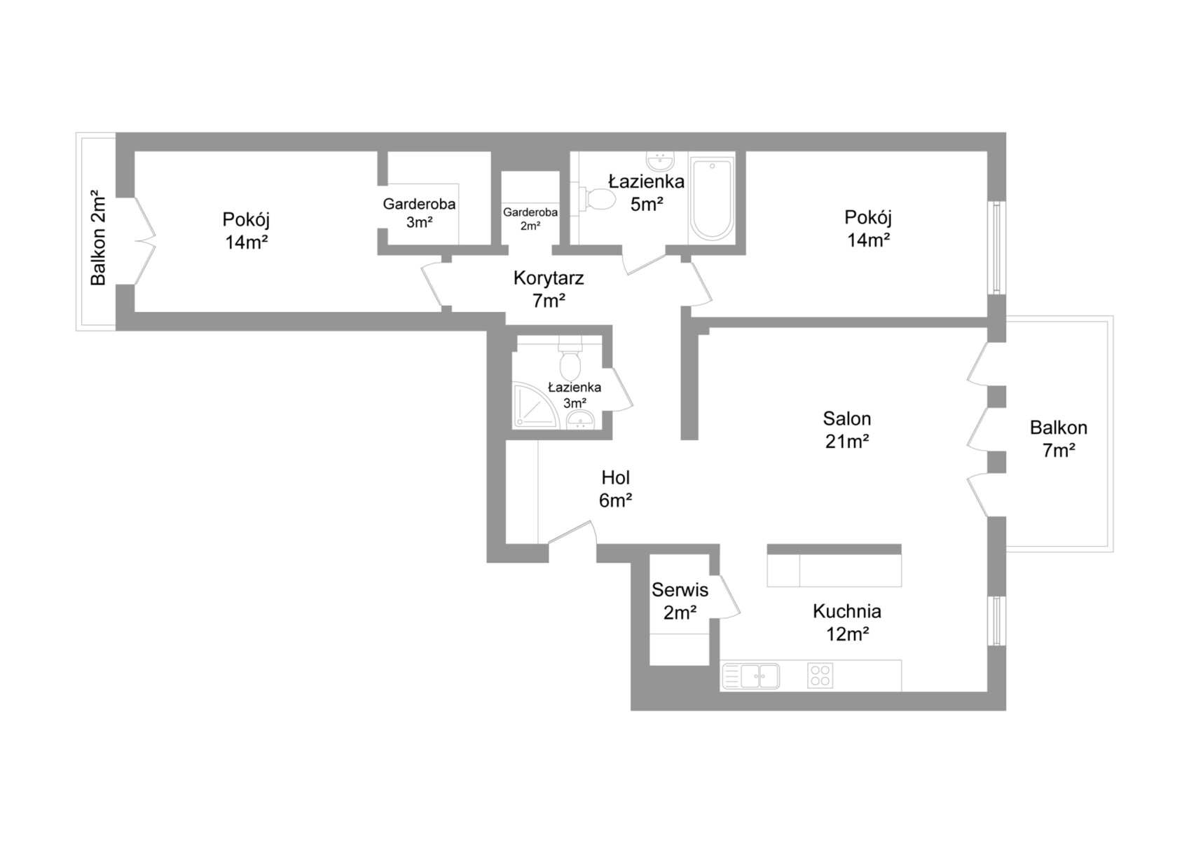 The functional layout of the 86.95 m² apartment ensures a natural division into the living and private areas: