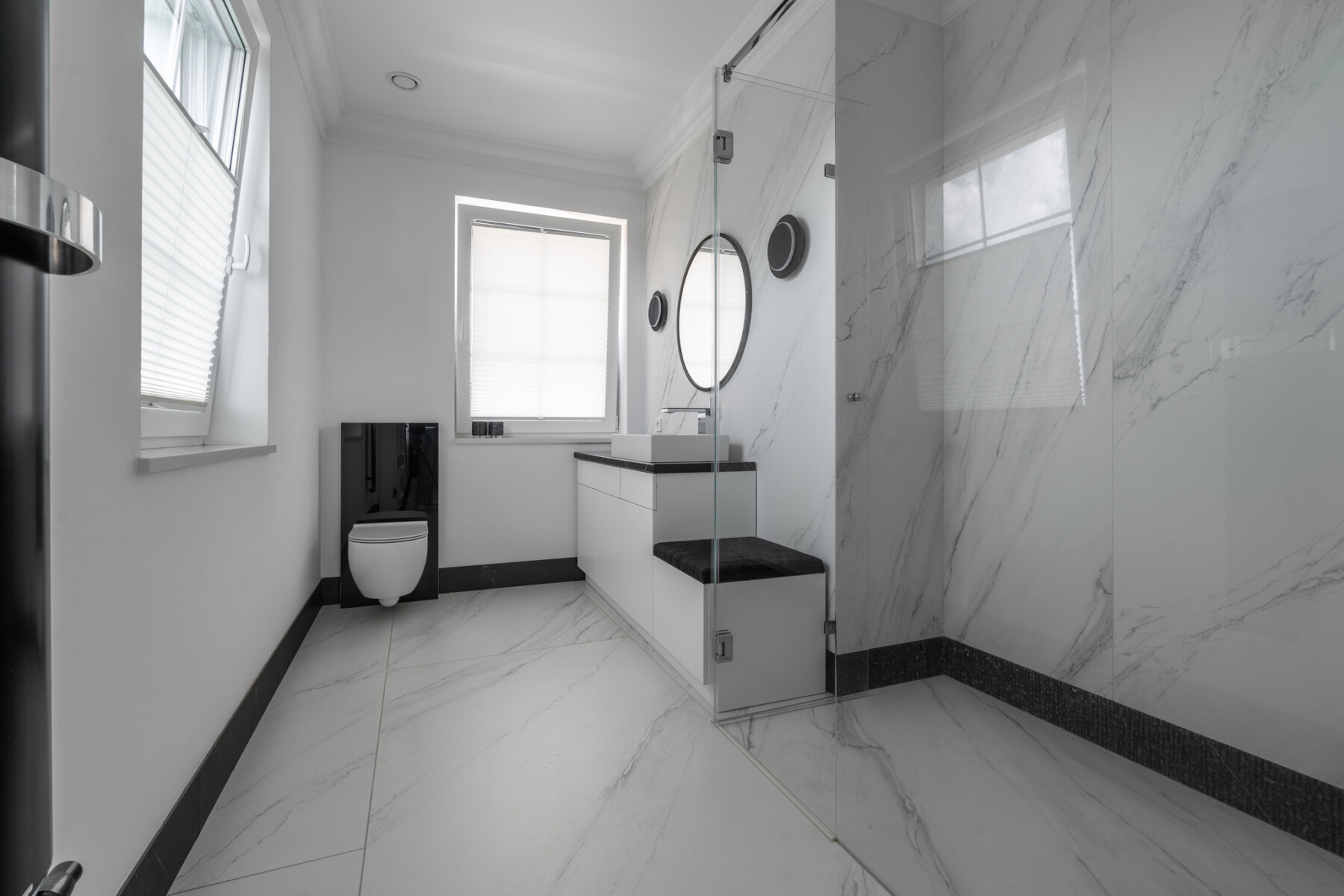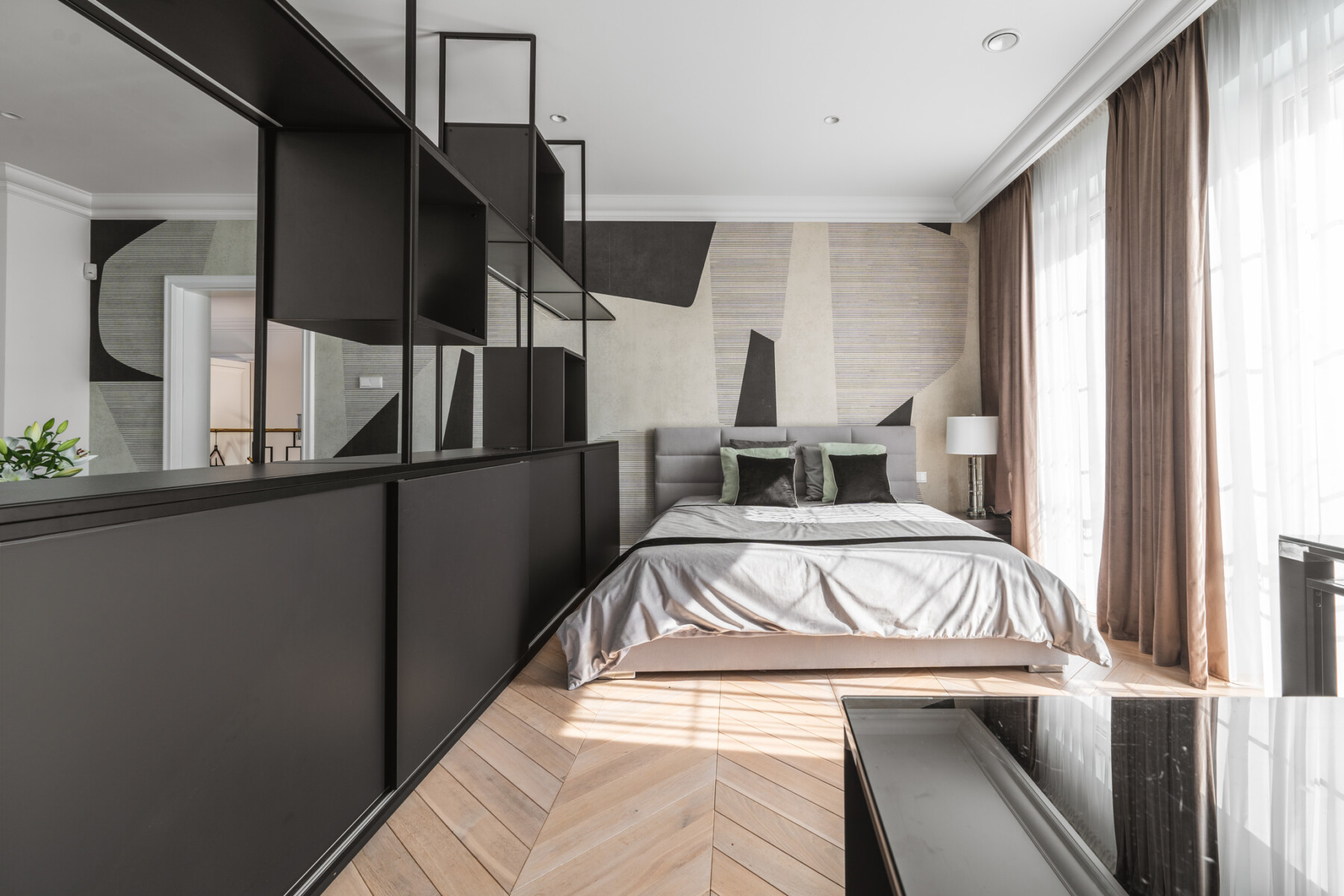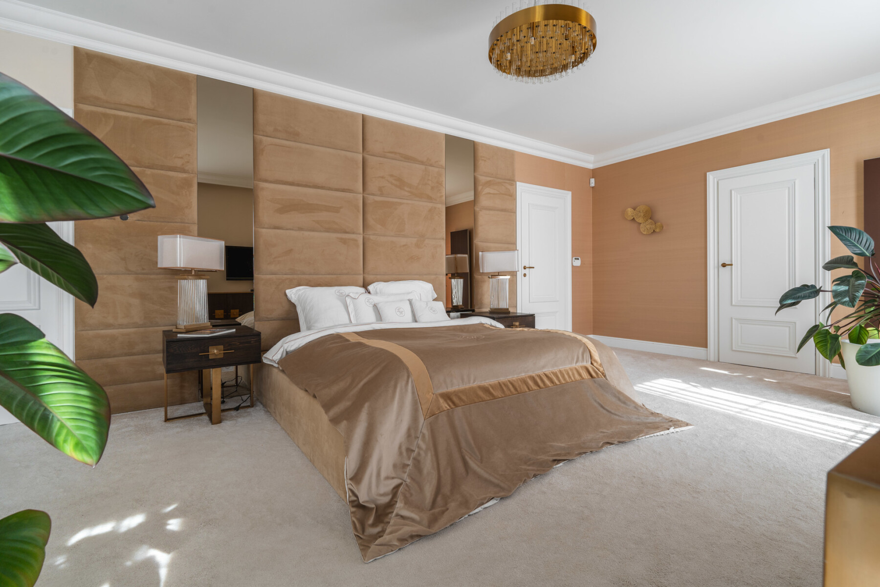 – comfortably furnished master bedroom with a large double bed in subdued colors (28.10 m2), with two wardrobes (7.23 and 6.50 m2), a stylish bathroom (18.56 m2) – second bedroom (42.30 m2) with a separate bedroom, office and chill-out area with its own bathroom (6.74 m2);