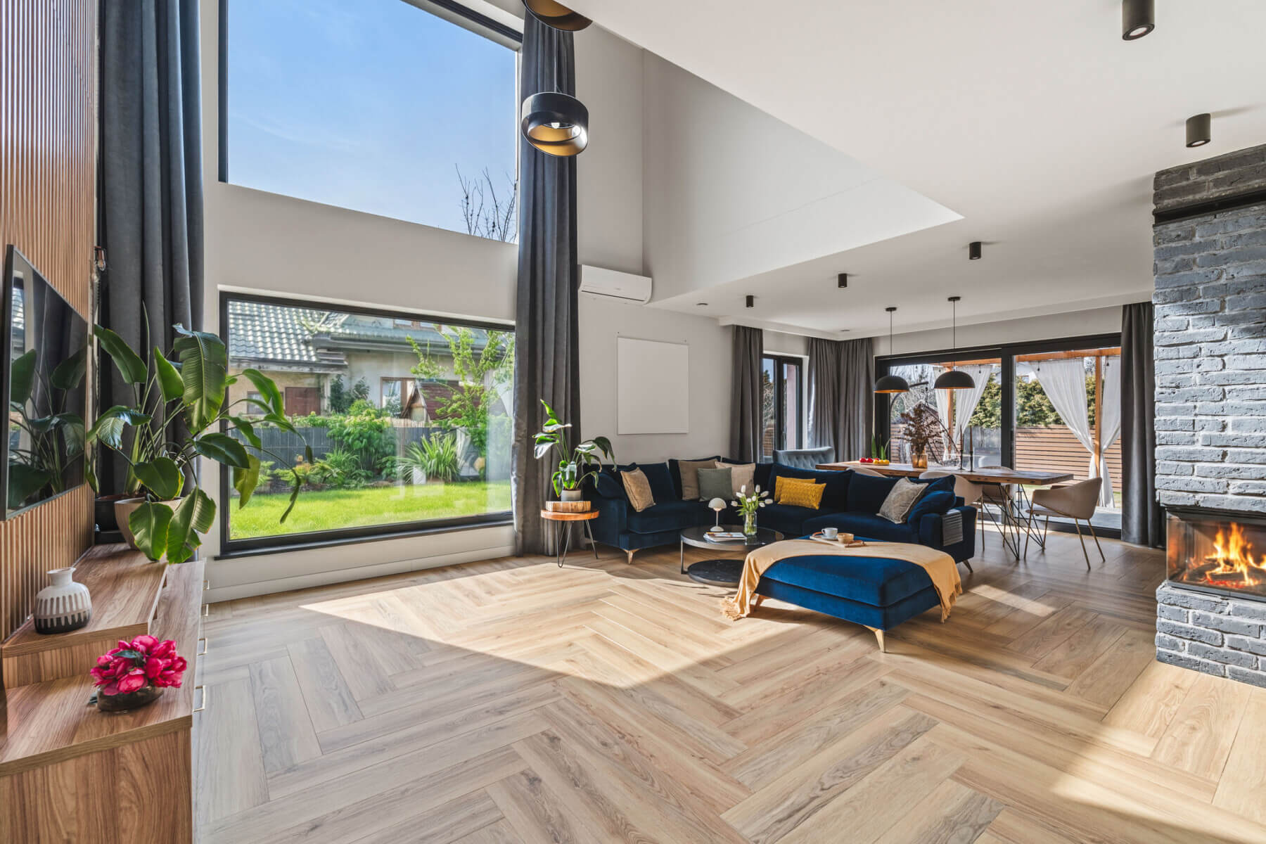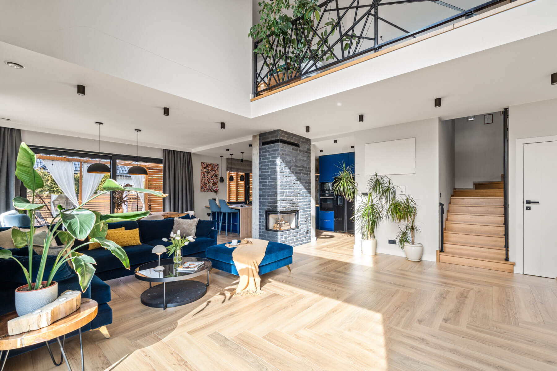 The house was built using modern technologies and high-quality energy-saving materials, ensuring comfortable everyday use and low maintenance costs . Photovoltaic panels were installed on the roof, largely covering the property’s energy needs. Underfloor heating is installed throughout the house, ensuring even heat distribution and high thermal comfort, and additional radiators are installed on the first floor. The living room features an elegant fireplace with a water jacket , which serves both as a decorative element and as a support for the heating system. The house is also equipped with a heat recovery system, ensuring constant air exchange with heat recovery, and air conditioning, ensuring optimal interior temperatures year-round. An additional advantage of the property is the intimate swimming pool in the garden —the perfect place to cool off on hot summer days and create a private relaxation area.