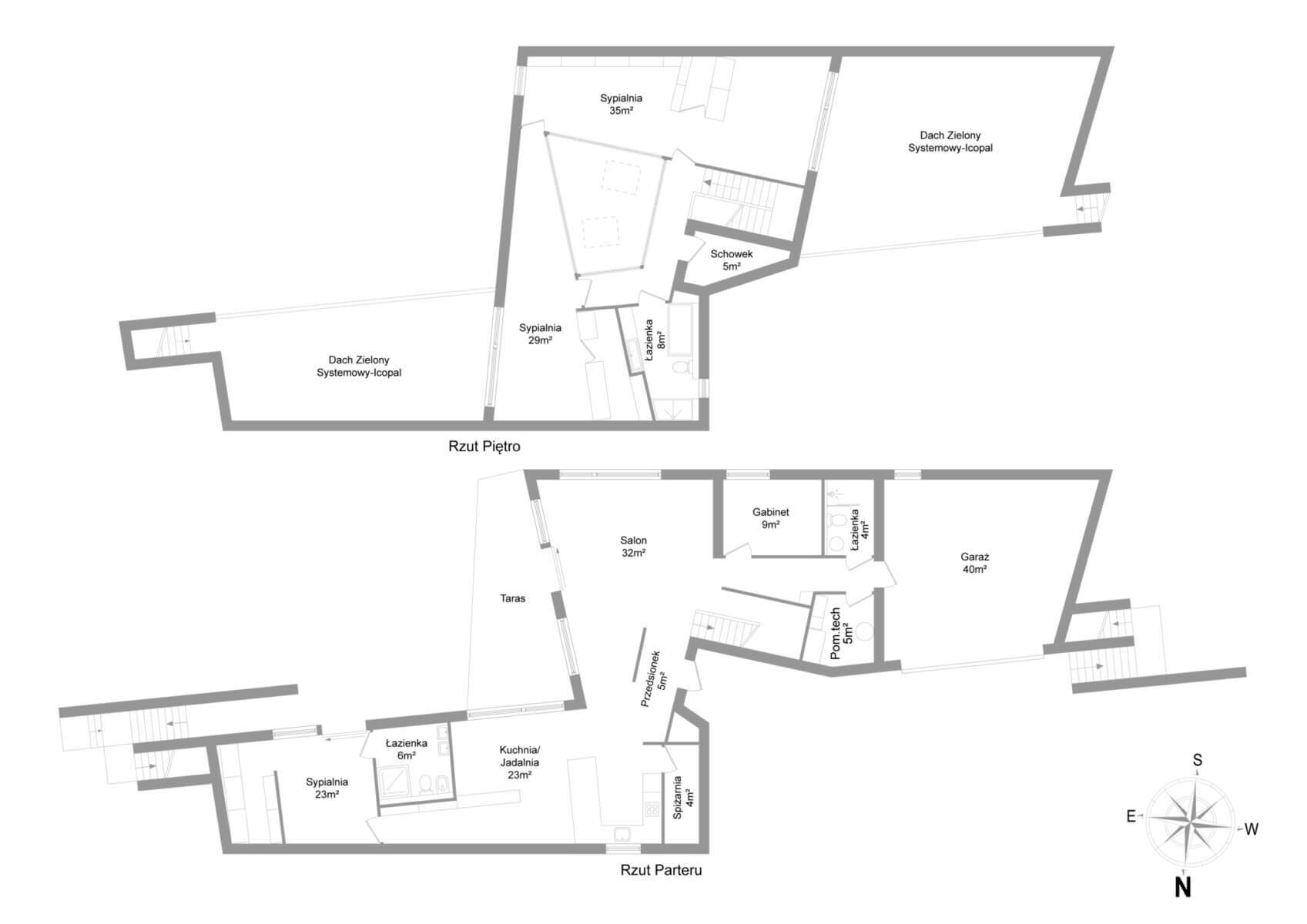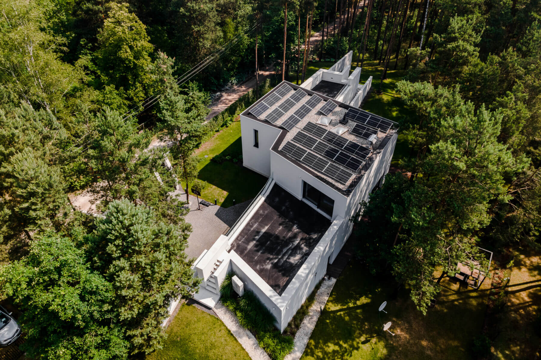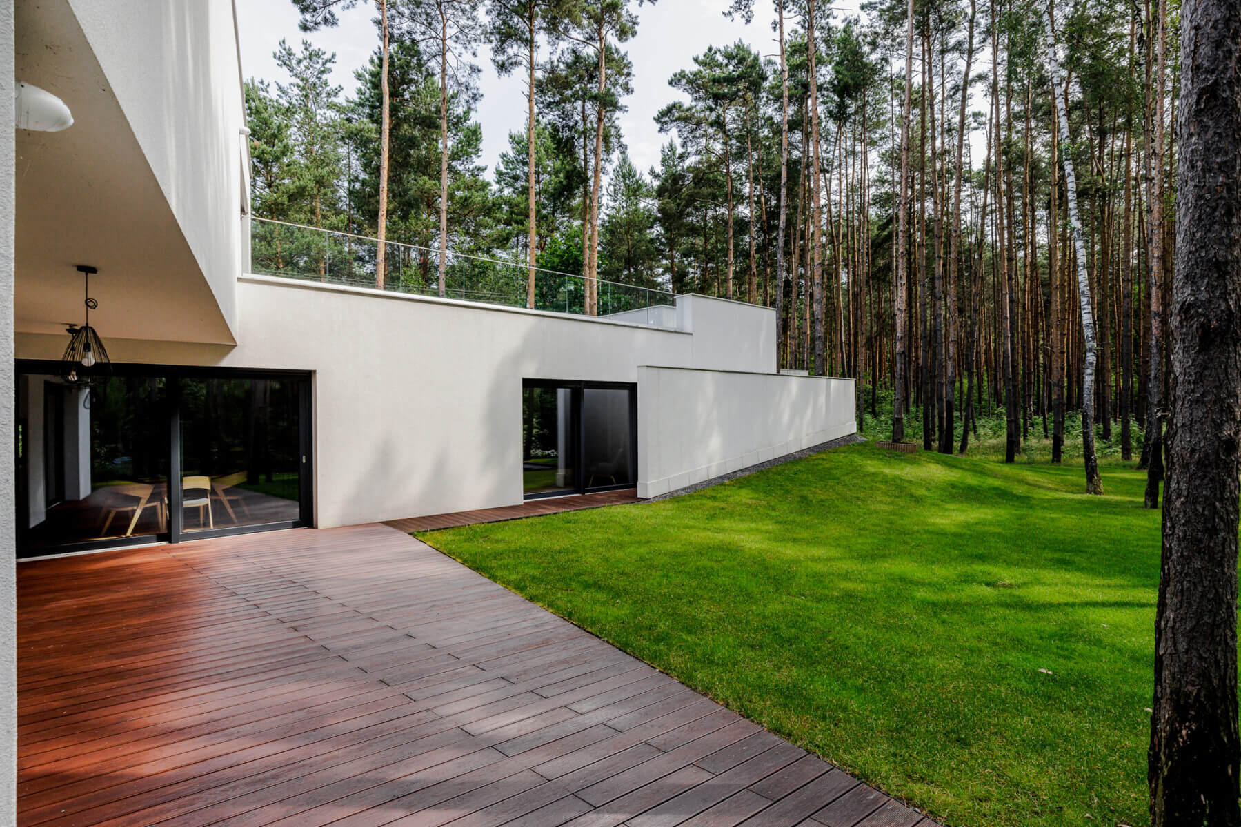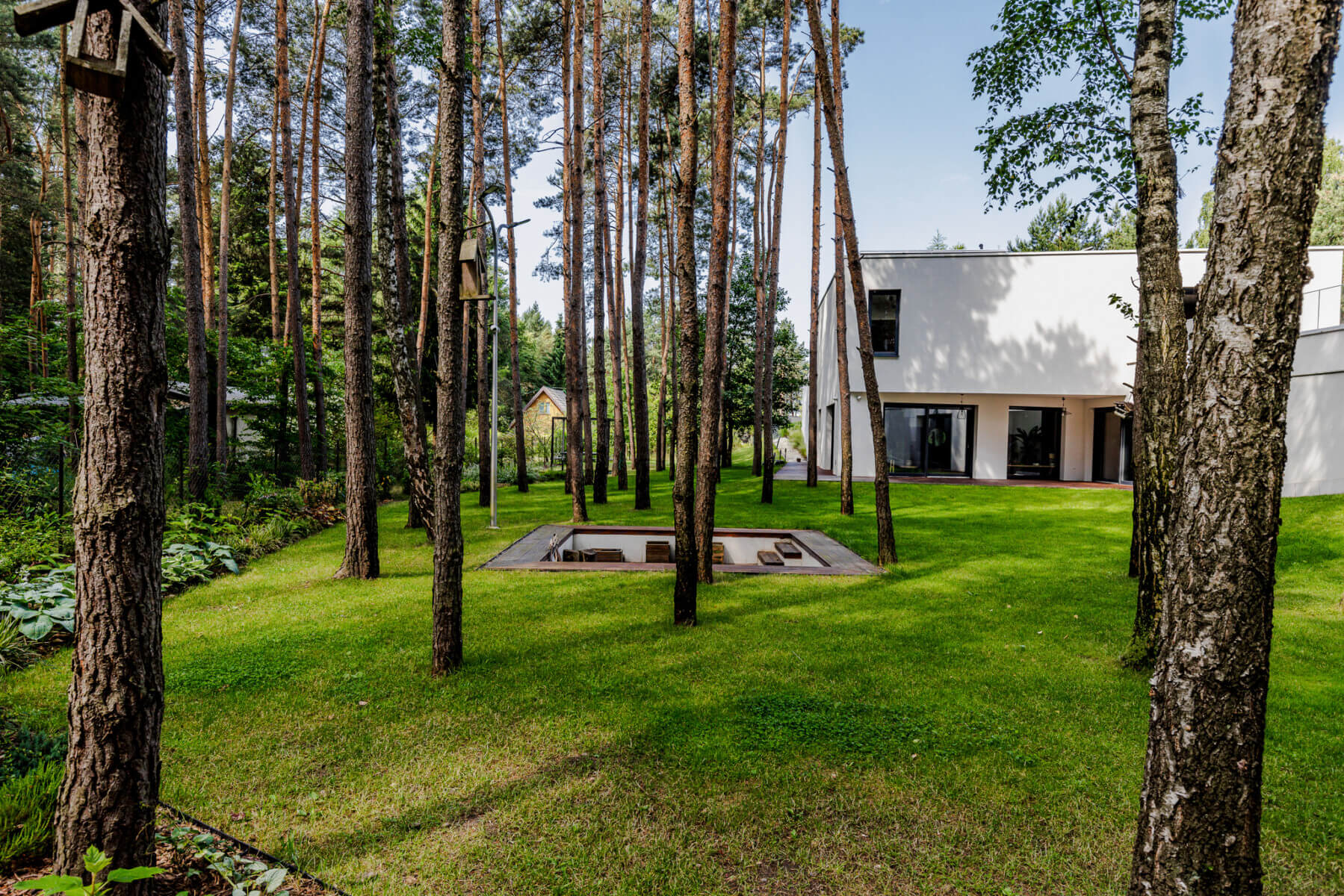 An extremely innovative house in the middle of a pine forest with extensive automation designed with modernity, comfort and harmony with the surrounding nature in mind. The coherent planned block of the house hidden in greenery together with a huge number of modern solutions creates an extremely interesting combination.