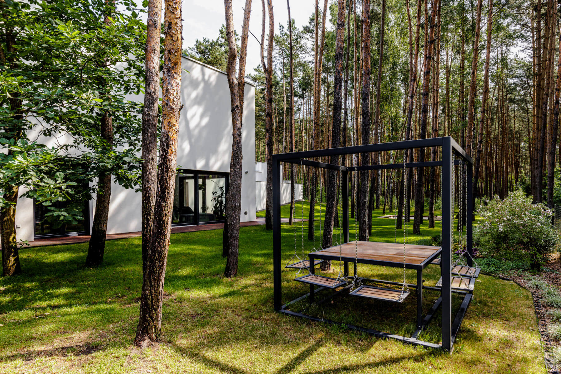 The 4,000 m2 garden is divided into two zones. One, where the house is located, is an ordered space where we will find, among others. a separate place for a bonfire, a wooden table with hanging swings, a zip-line, mini-growing your own strawberries in the summer. The second is a wooded area that is an ideal recreation and leisure space.