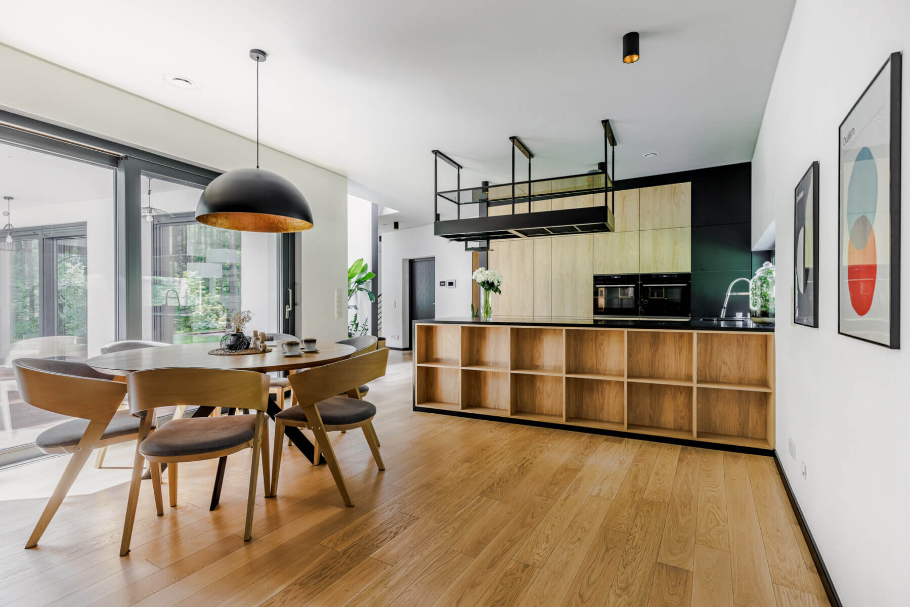 – an open and functional kitchen with extremely modern solutions, e.g. automated cabinets and built-ins throughout the space