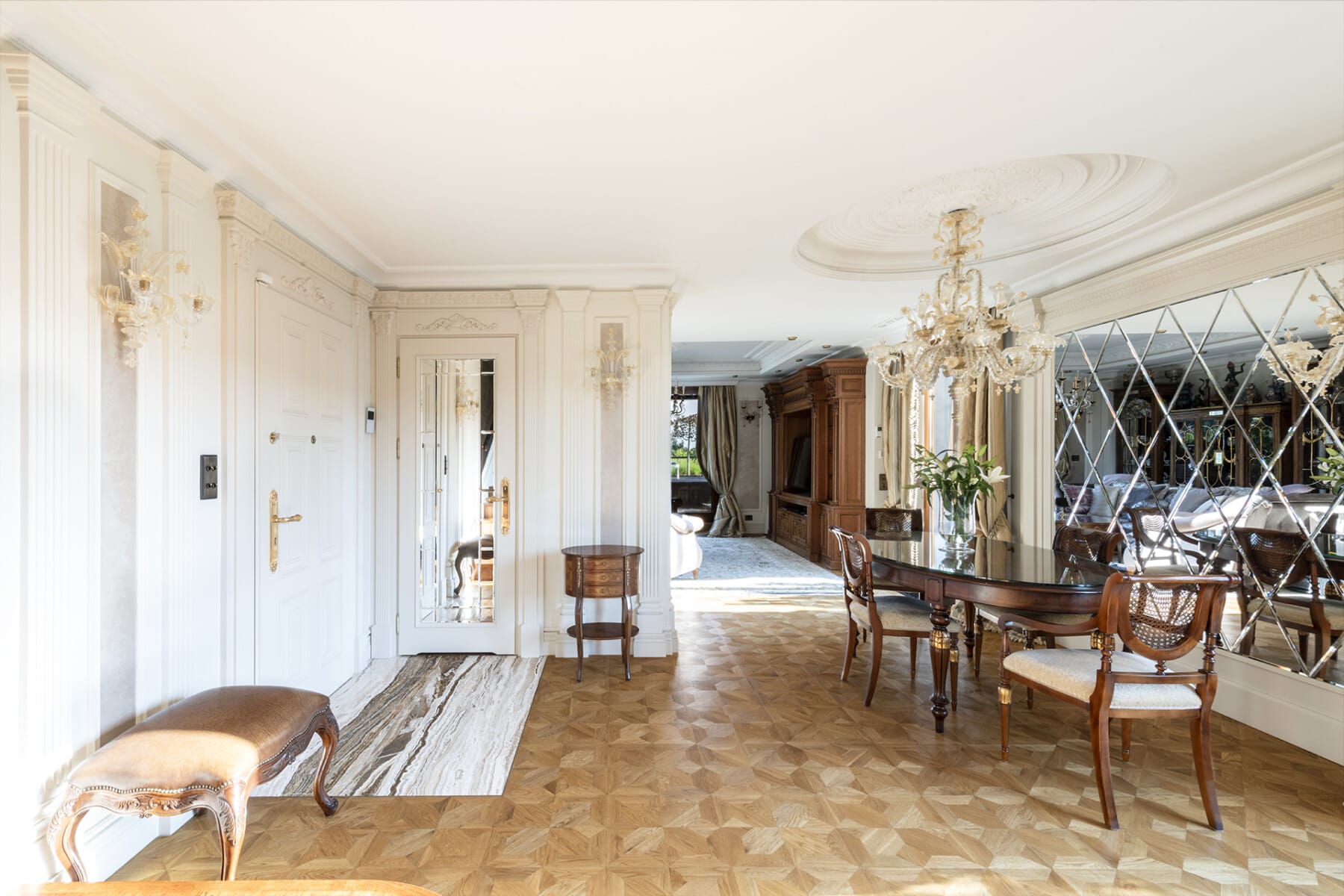– Jadalnia: przestrzeń jadalni dopełnia rozkładany stół na 8 osób włoskiej firmy PAL MOBILI.
