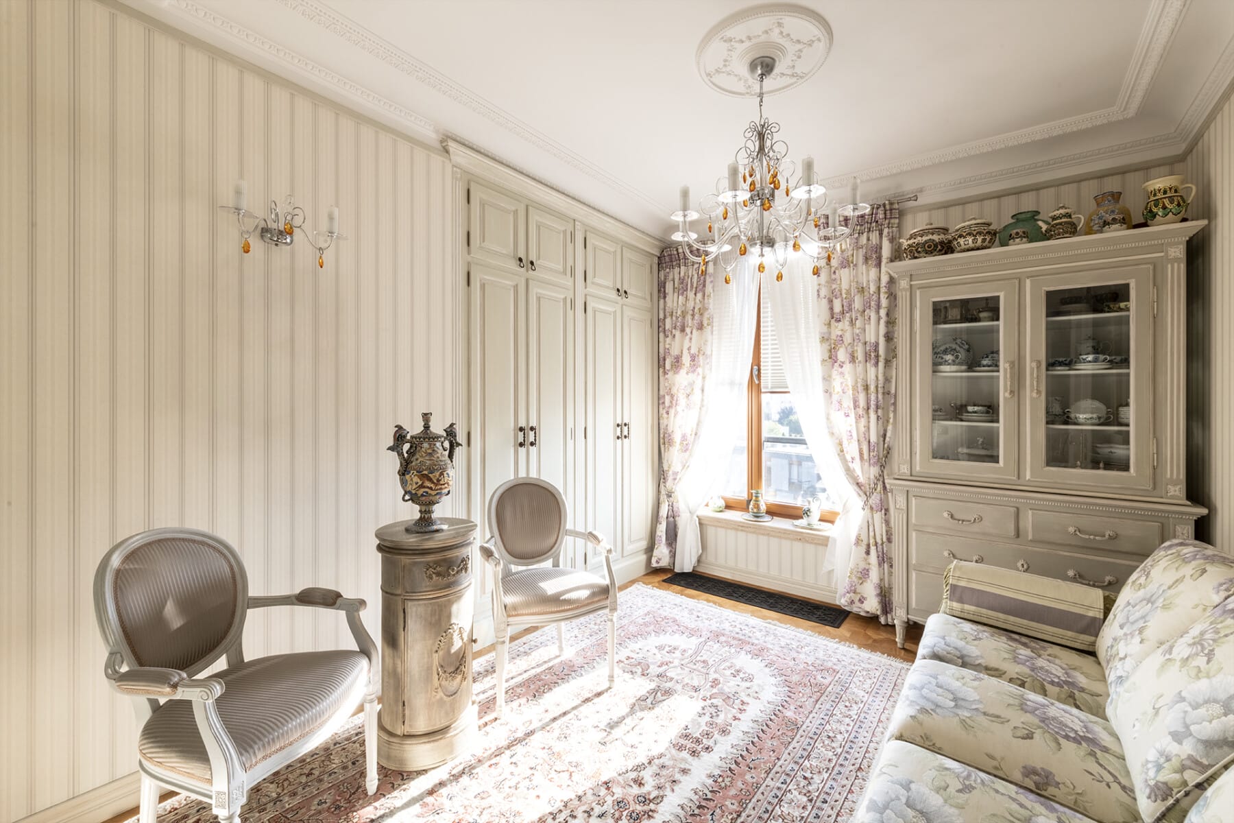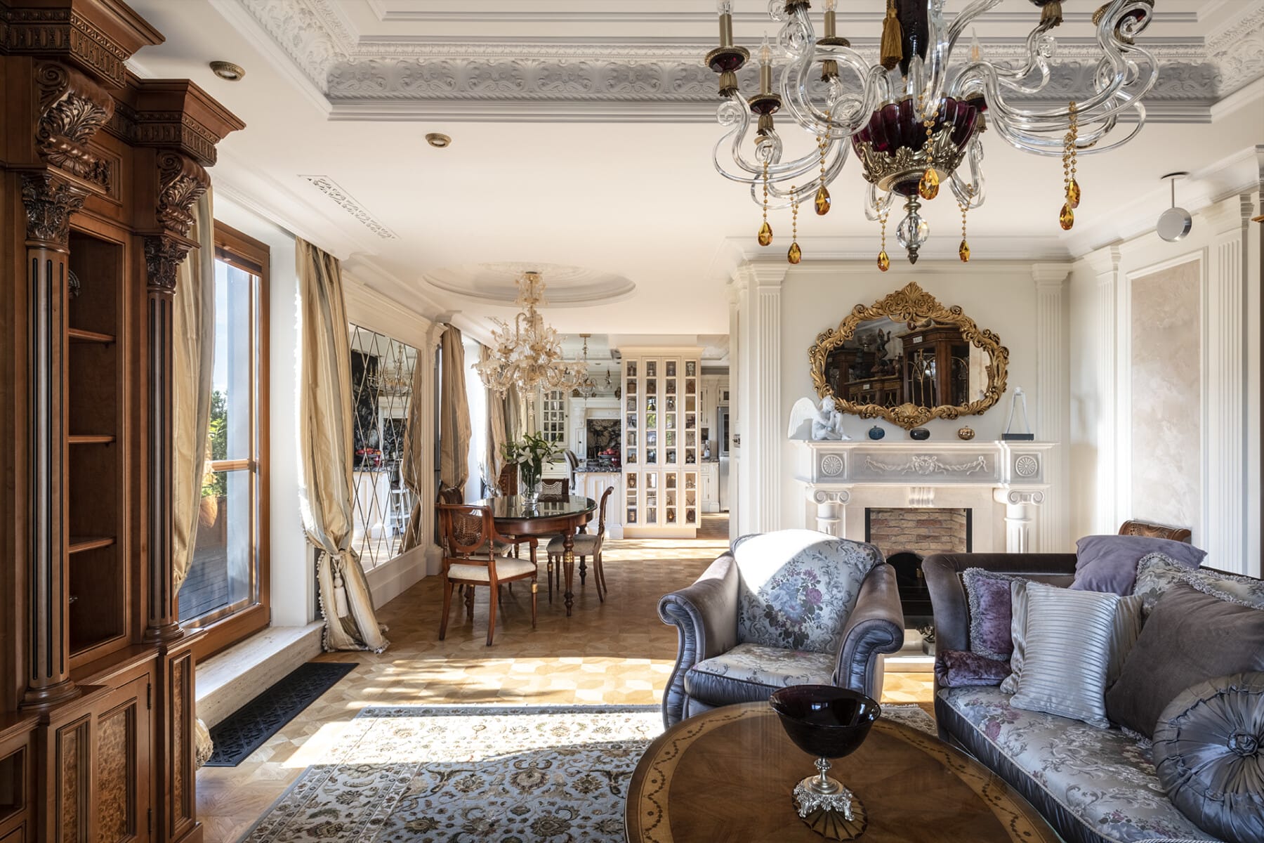 W każdym pomieszczeniu zamontowano bogate sztukaterie gipsowe na specjalne zamówienie firmy RAFFAEL.