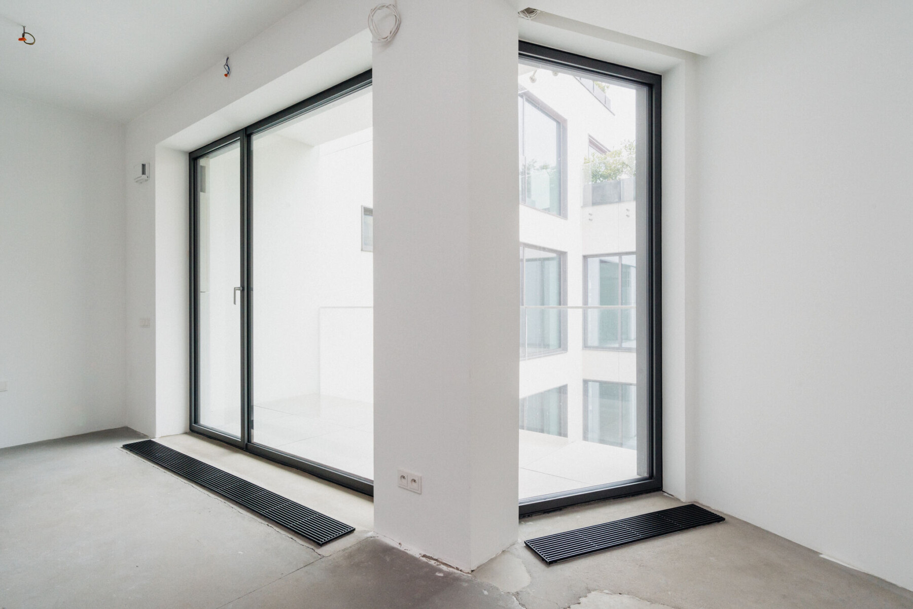 · Ogrzewanie ukryte w podłodze pod designerskimi kratkami w czarnej anodzie.