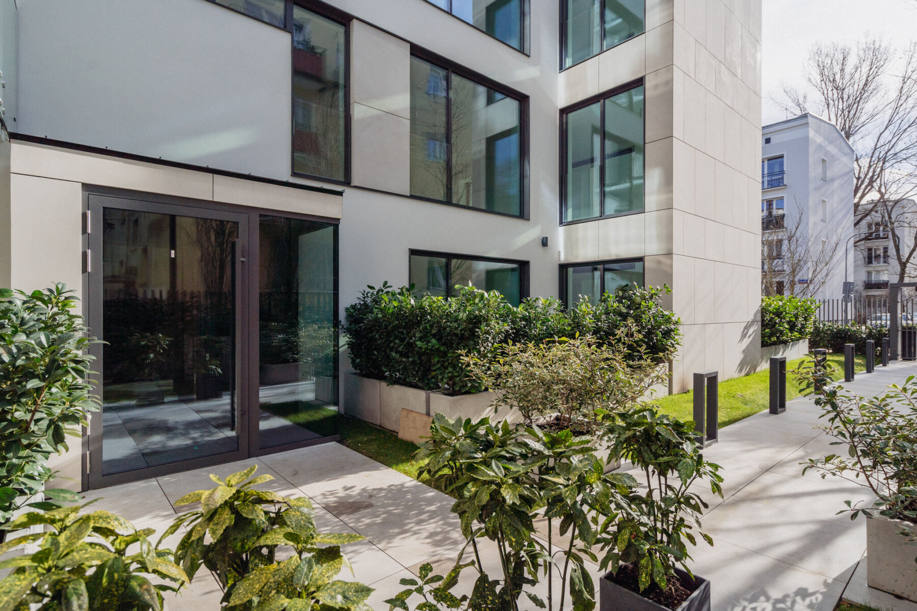 · Przestrzeń wokół budynku została zagospodarowana intensywną zielenią oraz nowoczesnym oświetleniem ogrodu oraz elewacji.
