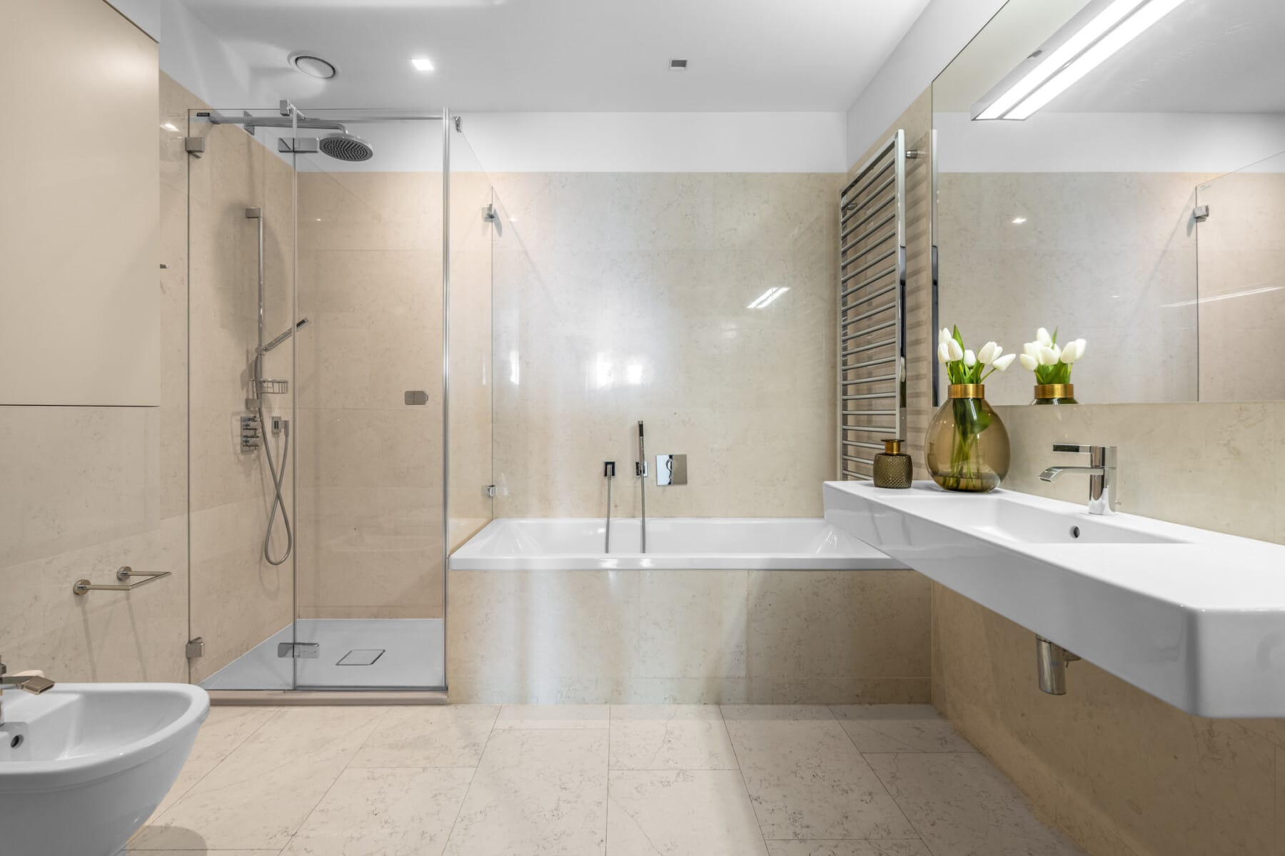 Strefa master to prywatna widokowa sypialnia z pokojem łazienkowym (wanna / prysznic) oraz wygodną przeszkloną garderobą.