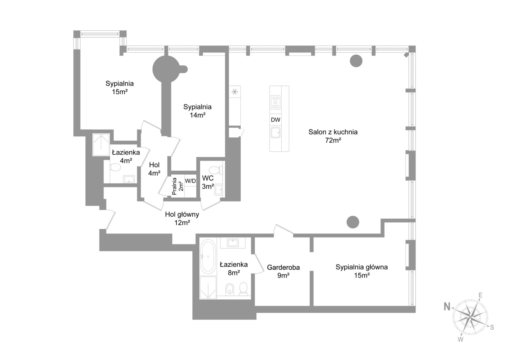 – funkcjonalna, otwarta na salon kuchnia, w pełni wyposażona w najwyższej klasy sprzęt AGD, z dużą wyspą;
