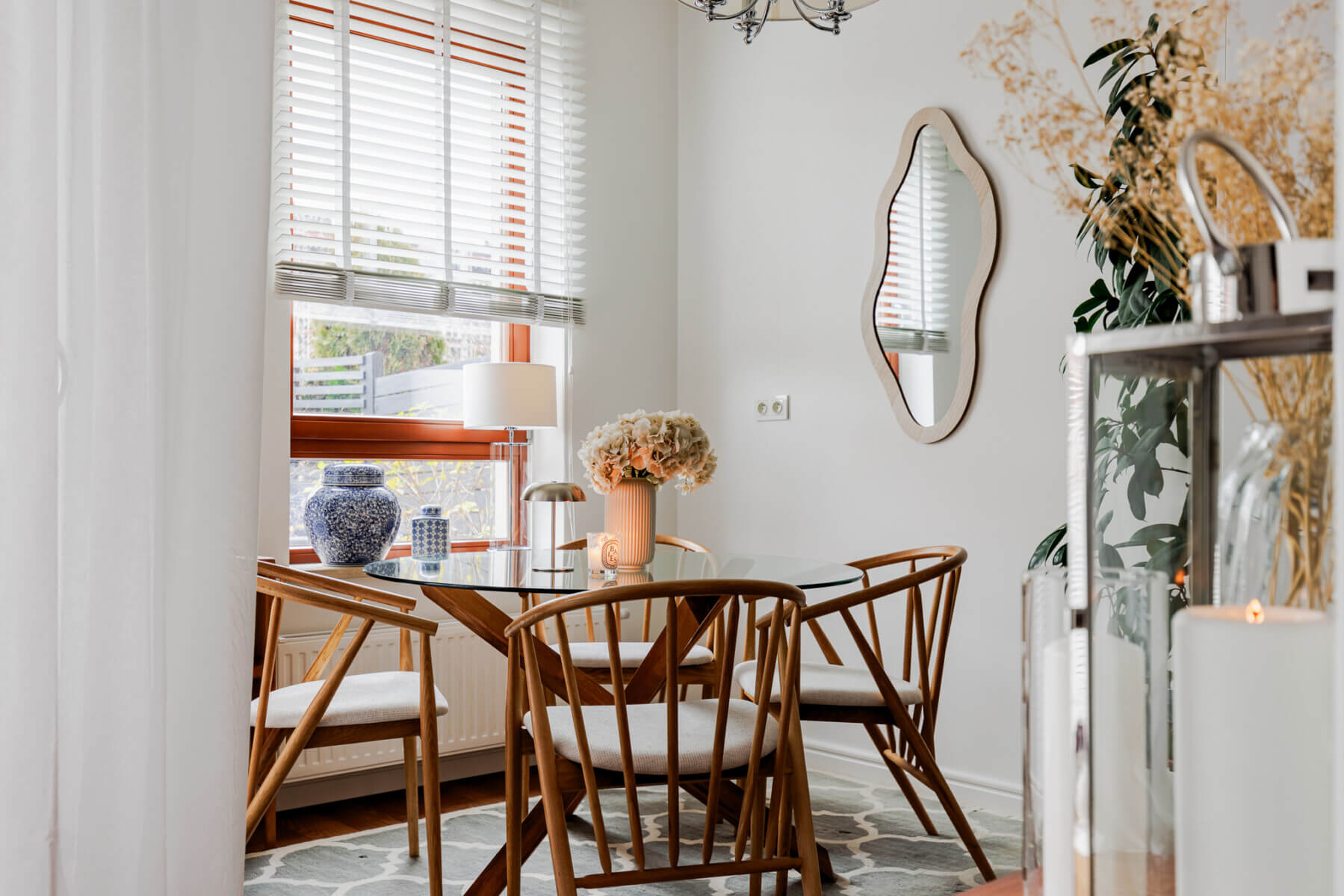 – Wydzielona część jadalni w wykuszu z widokiem na taras pozwala na komfortowe spożywanie posiłków w pięknej scenerii, w gronie rodziny lub przyjaciół.