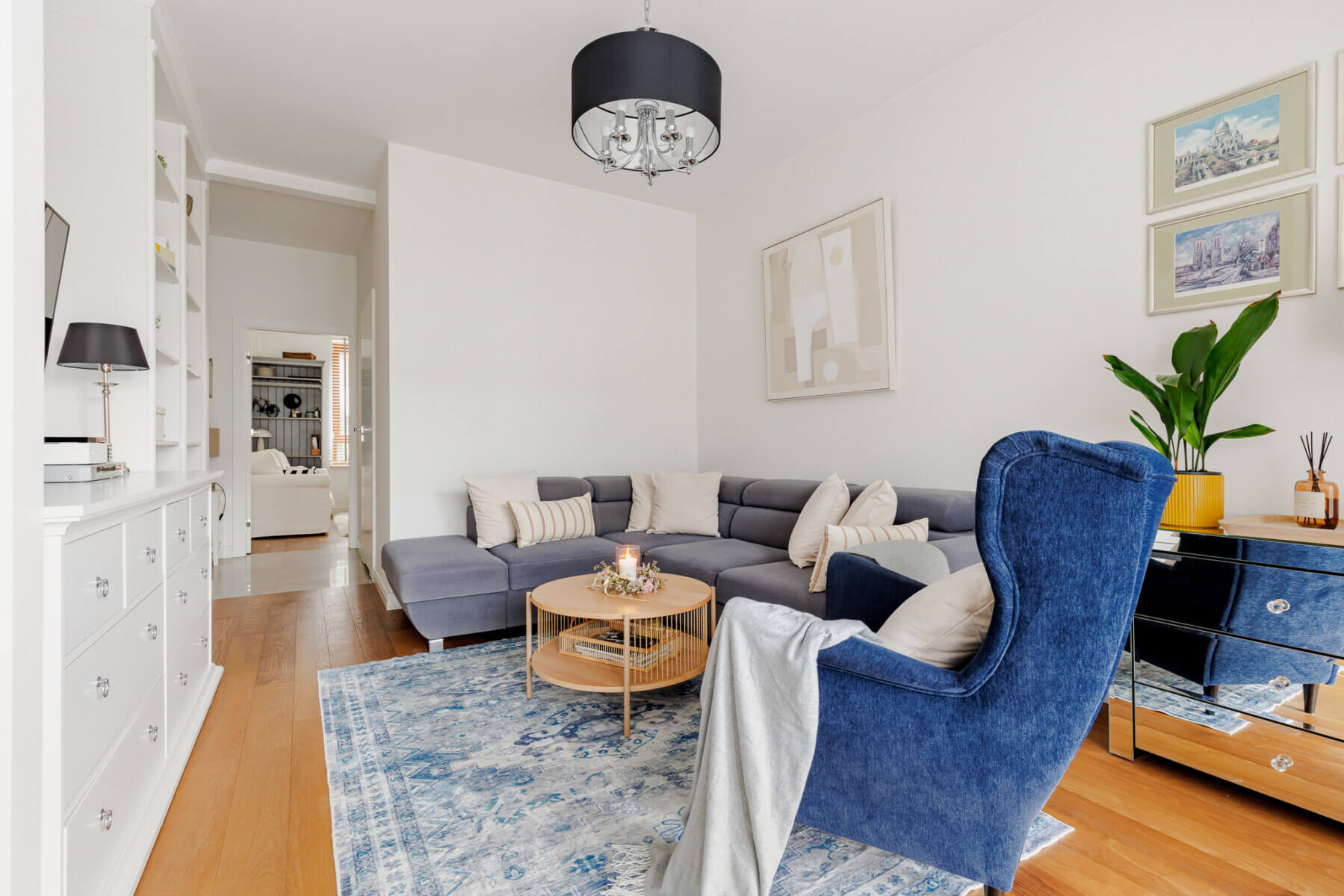 Luksusowe mieszkanie w stylu ponadczasowej, nowoczesnej wersji Hampton – idealne dla osób poszukujących wyrafinowanego, stałe umeblowanie zostaje, w cenie umeblowanie.