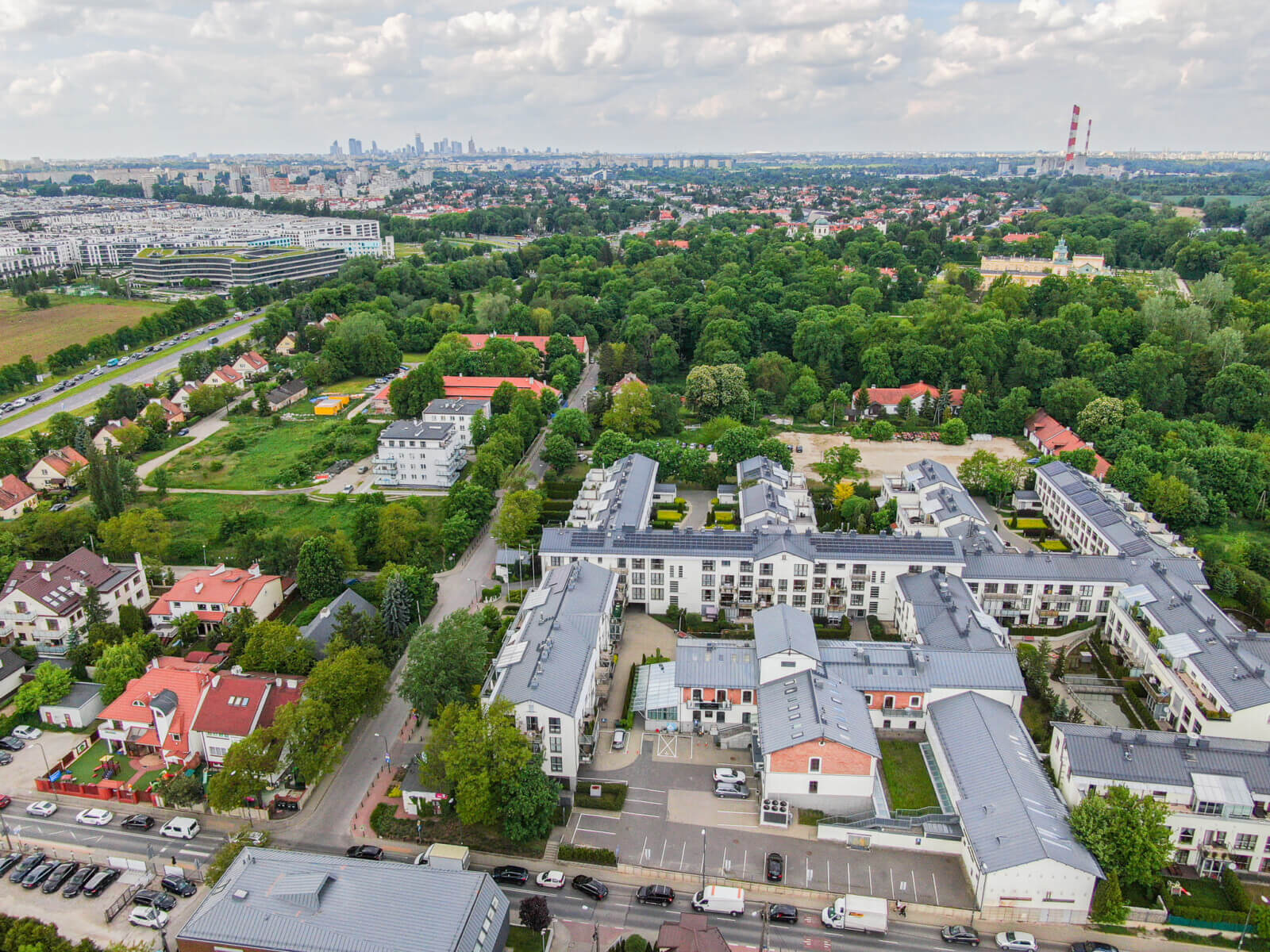 Apartament mieści się w reprezentacyjnej części Wilanowa, tuż przy zabytkowym Pałacu Wilanowskim z pięknymi ogrodami pałacowymi. Niedaleko liczne tereny rekreacyjne, między innymi parki w Powsinie i Natolinie. Lokalizacja dobrze skomunikowana, w bliskiej odległości przystanek autobusowy, z którego w krótkim czasie dostaniemy się do centrum miasta bądź stacji metra. W okolicy znajdują się liczne restauracje, kawiarnie, sklepy oraz placówki edukacyjne.