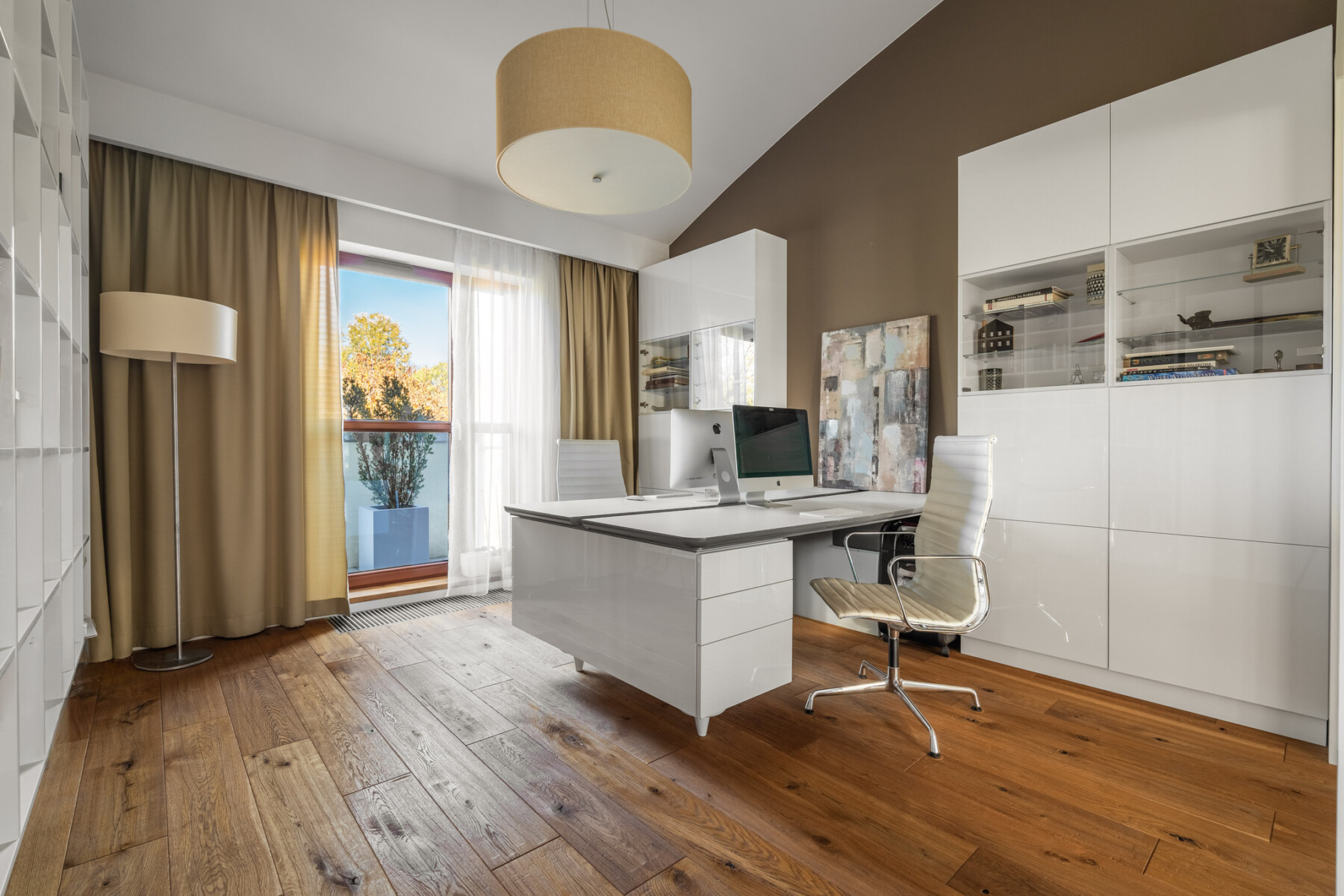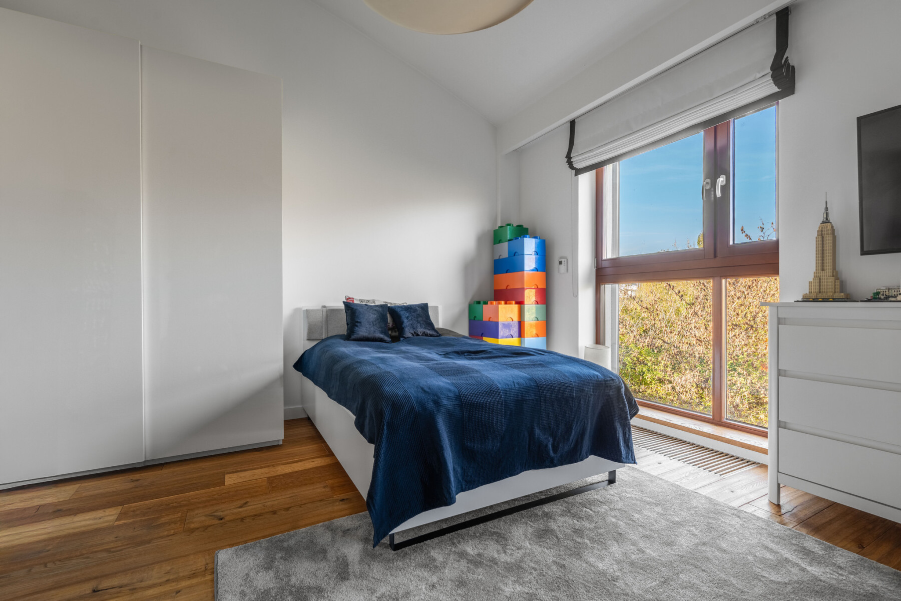 Trójstronny słoneczny Penthouse z tarasem, sąsiadujący z ul. Kostki Potockiego w Wilanowie Królewskim.
