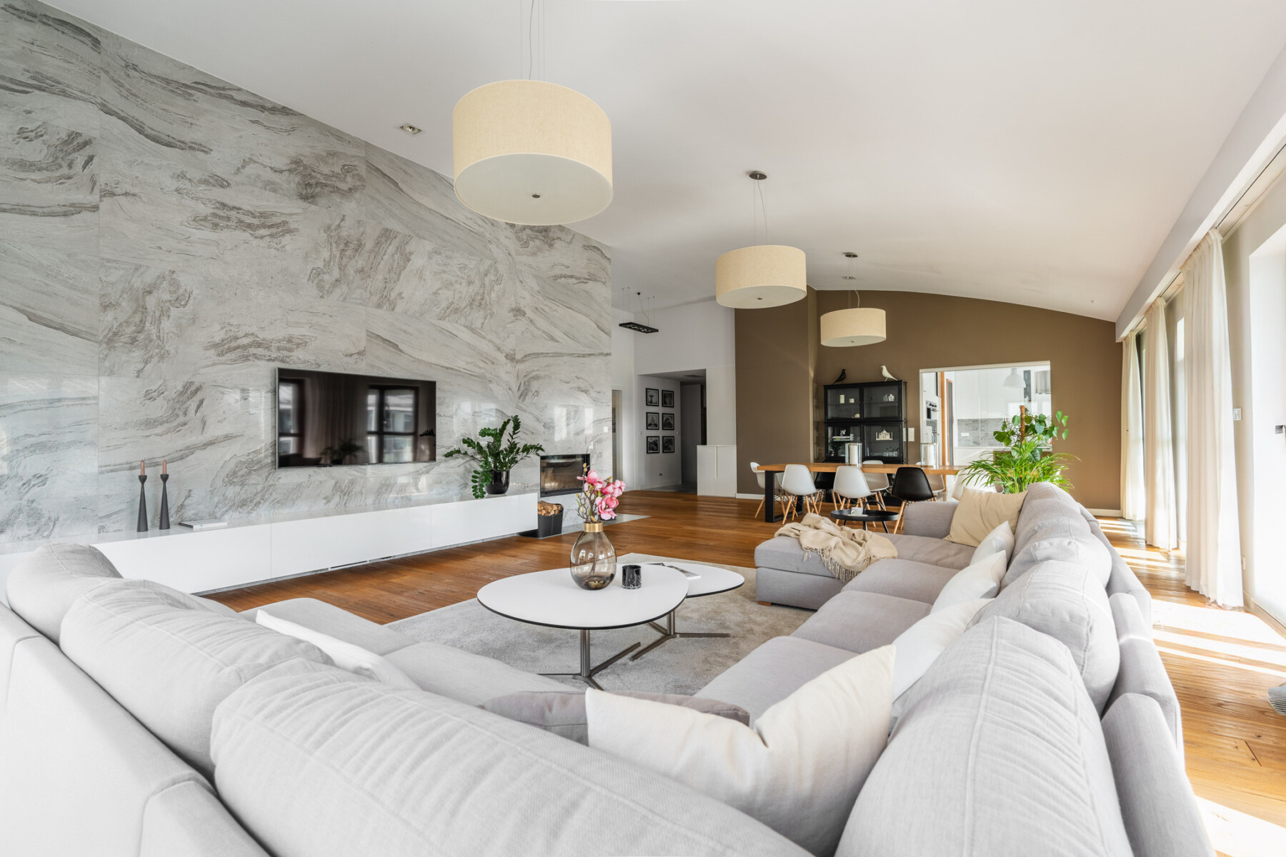 Ten wyjątkowy apartament urządzony został w niezwykle ergonomiczny sposób, jest wyposażony w zabudowy stolarskie pod wymiar, okładziny kamienne w łazienkach i salonie, drogie rozwiązania i designerskie dodatki. Apartament jest klimatyzowany, a na podłodze ułożono przepiękny dębowy parkiet. Wysokie wnętrze nadaje poczucia jeszcze większej przestrzeni.