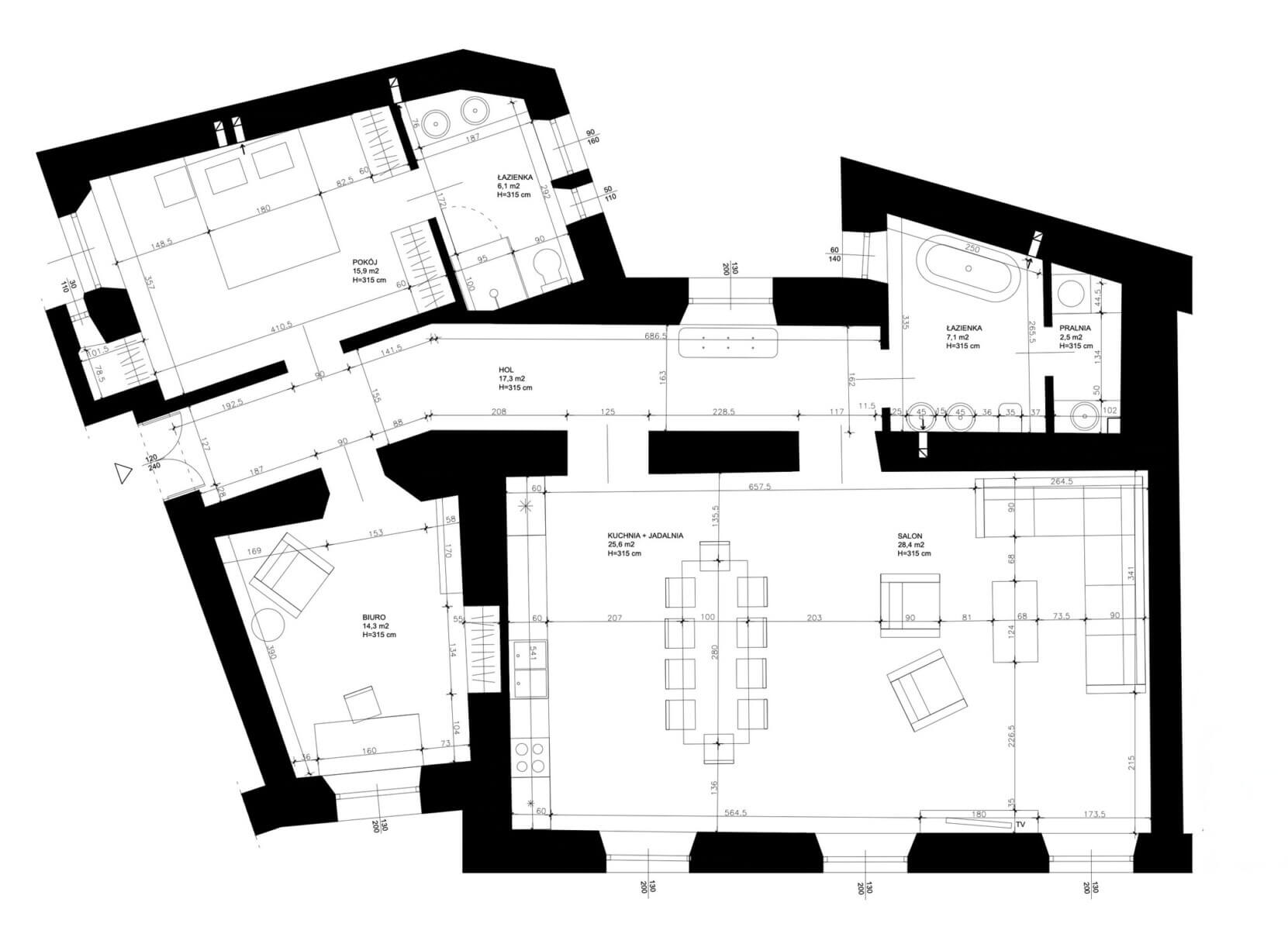 Na apartament o powierzchni 117 m2 składają się: