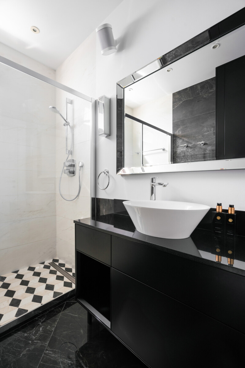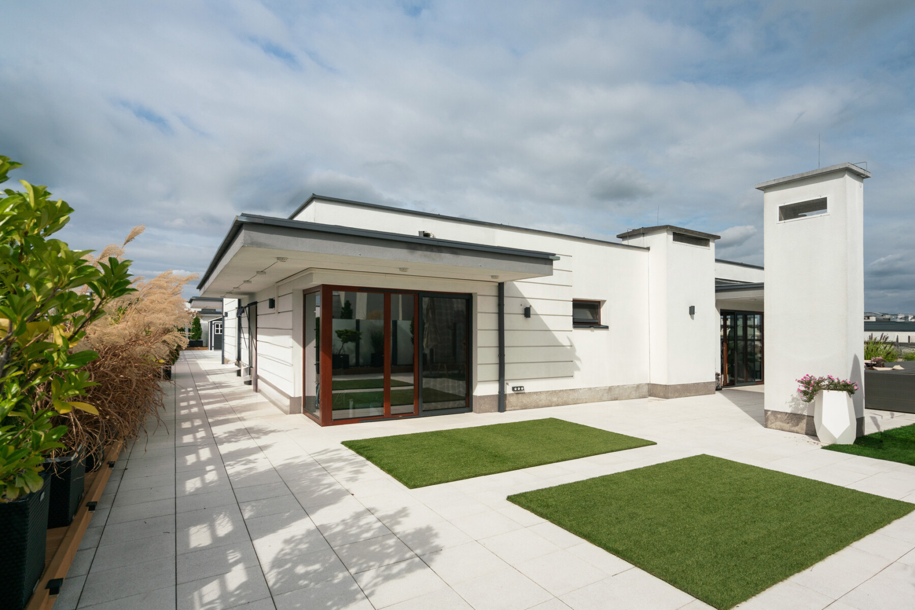 Łącznie – 4 pokoje + pomieszczenia gospodarcze, pralnia oraz imponujący taras 350 m².