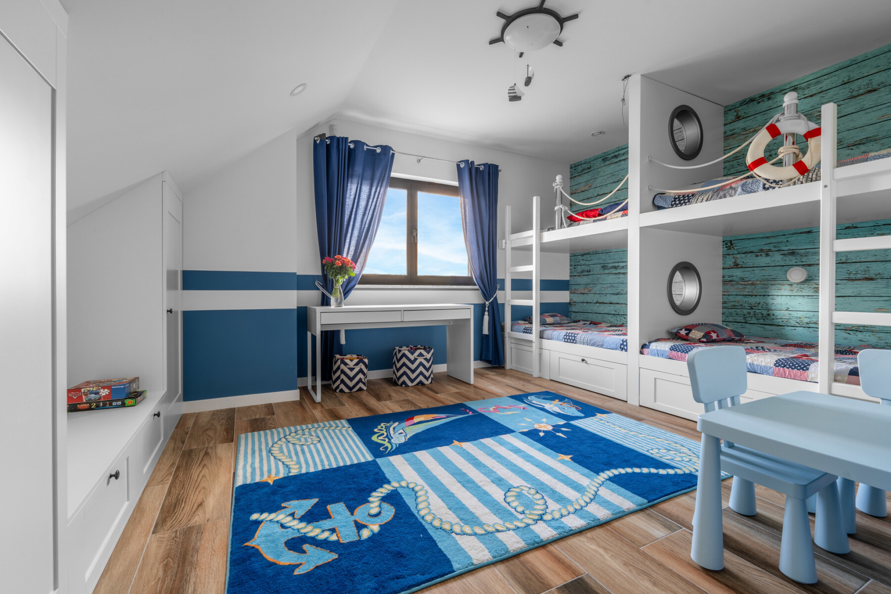 – 4 umeblowane przestronne sypialnie w tym dwie z widokiem na jezioro i dwie z widokiem na osiedle