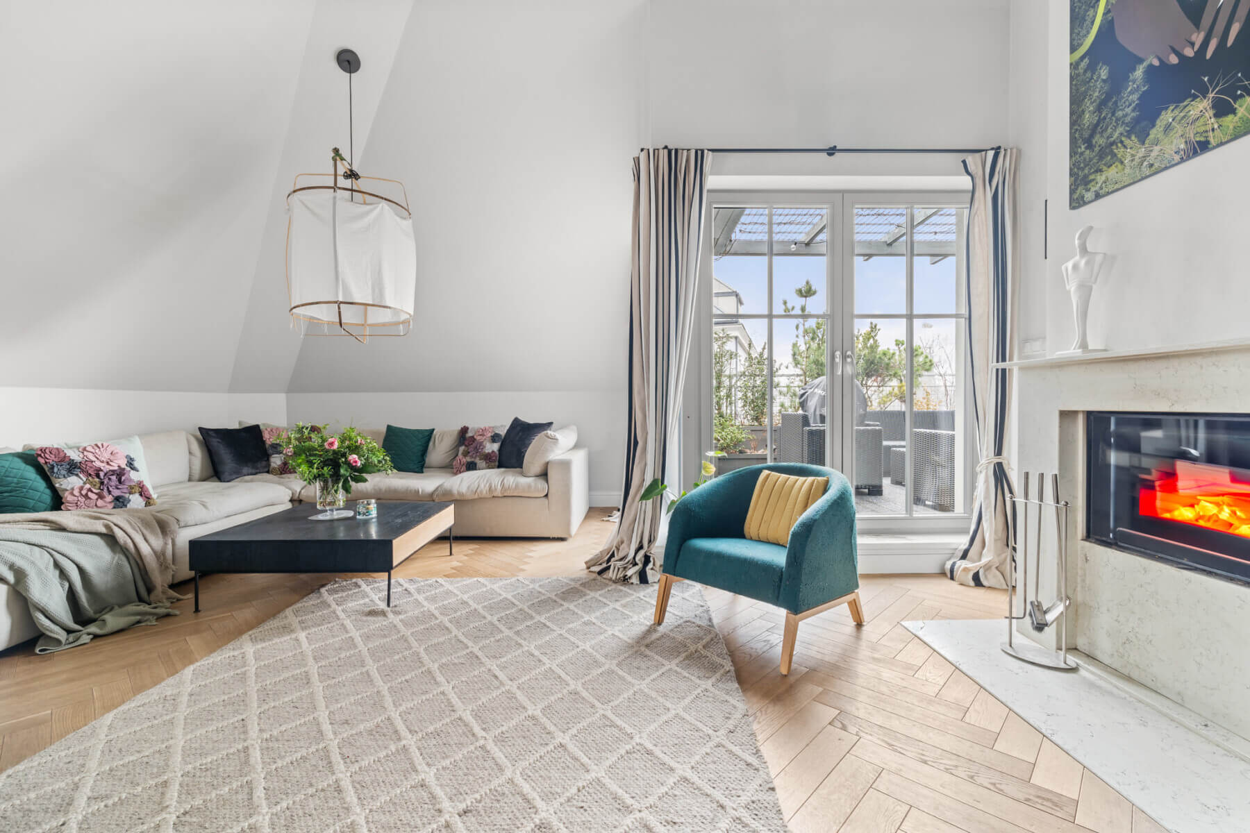 To prawdziwa namiastka domu – wysokie sufity w salonie, kominek, taras i kameralny budynek tylko z 6 mieszkaniami.