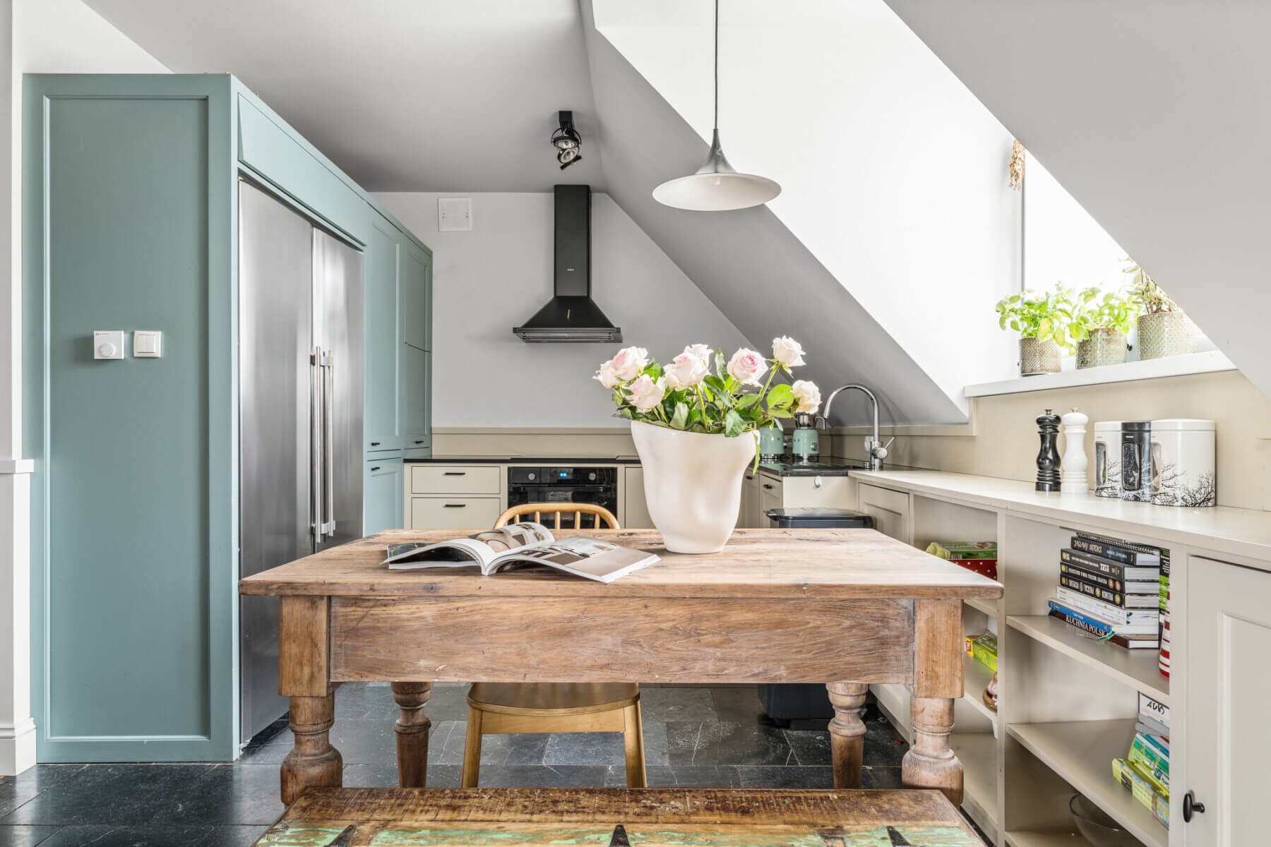 – w pełni wyposażona, funkcjonalna kuchnia otwarta na salon,