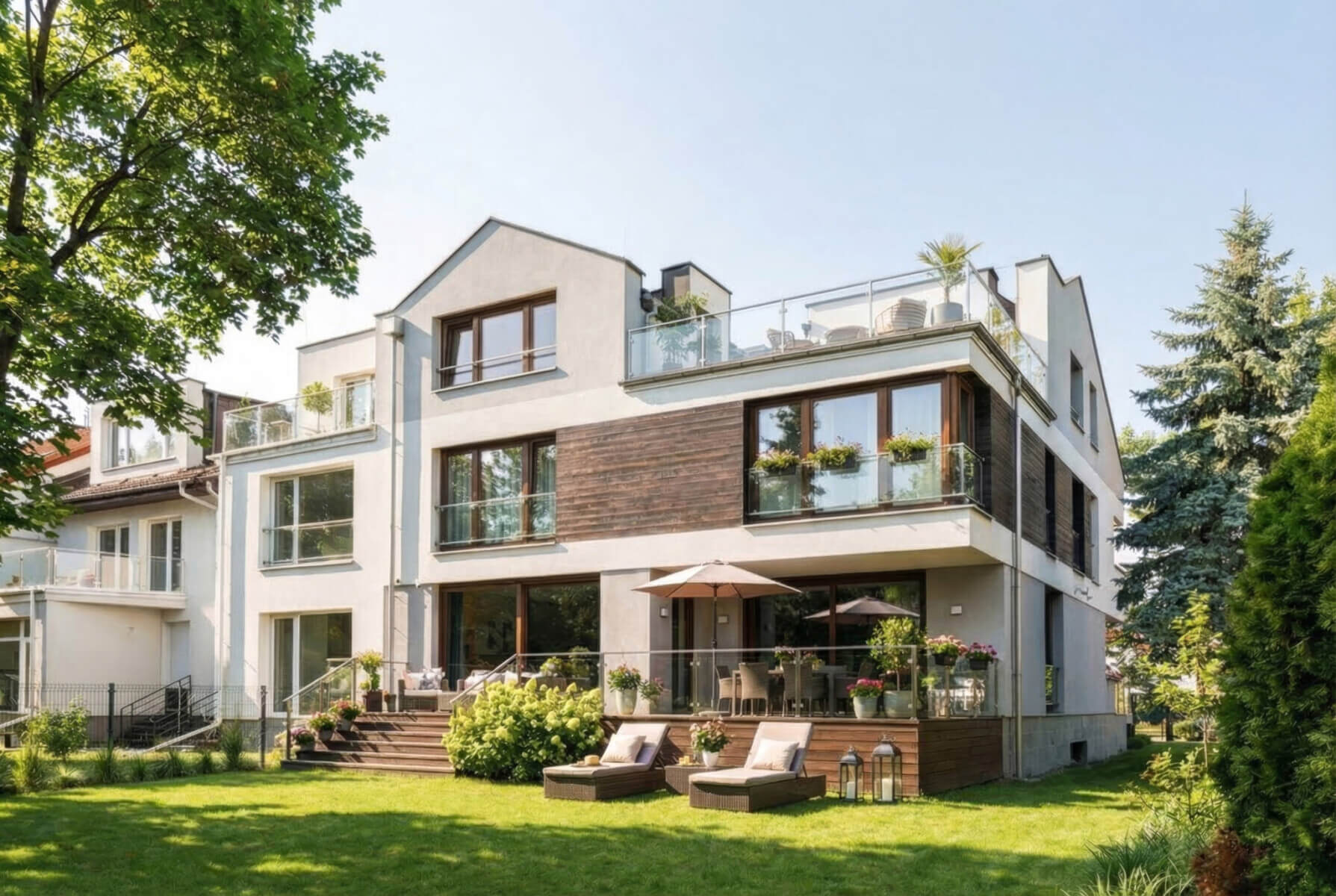 6 pokoi, 3 Łazienki, przyjemny i słoneczny ogród oraz 2 duże tarasy. Garaż na 3 samochody.