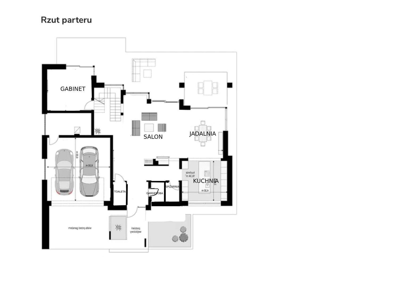 Ogród to prawdziwa oaza spokoju i relaksu. System nawadniania z własnego źródła wody zapewnia piękną, zieloną trawę i piękne rośliny przez cały rok. Oświetlenie ogrodu tworzy niesamowitą atmosferę wieczorami, idealną do spędzania czasu na świeżym powietrzu. Taras z zadaszeniem to doskonałe miejsce na letnie przyjęcia, a nowoczesne palenisko zapewnia ciepło podczas chłodniejszych wieczorów. Całość jest zaprojektowana tak, abyś mógł cieszyć się prywatnością i komfortem.