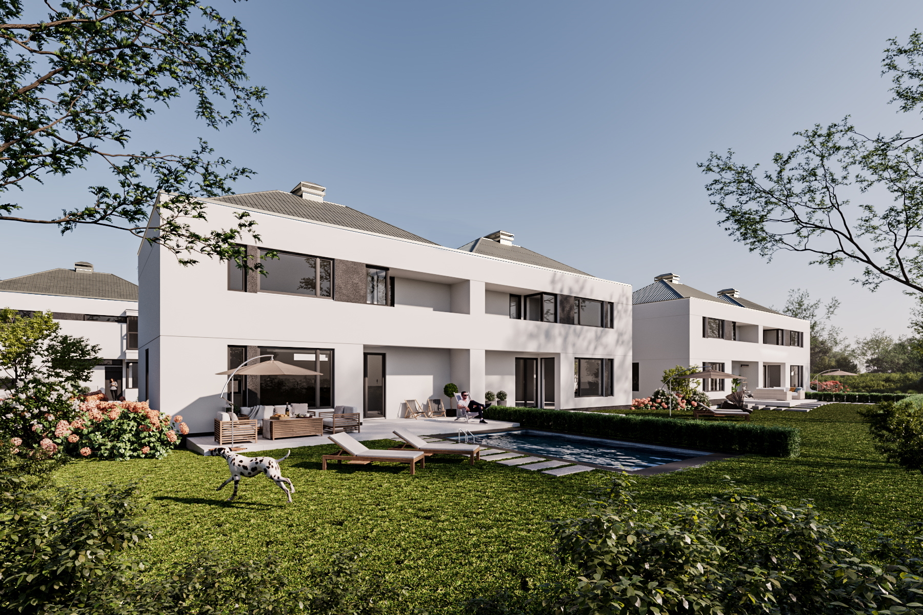 Każdy dom (o powierzchni 228 m2) ma dwie, pełne, kondygnacje mieszkalne oraz wyjątkowy ogród – miejsca relaksu i spotkań dorosłych, jak i wspaniałej krainy zabaw dla najmłodszych.