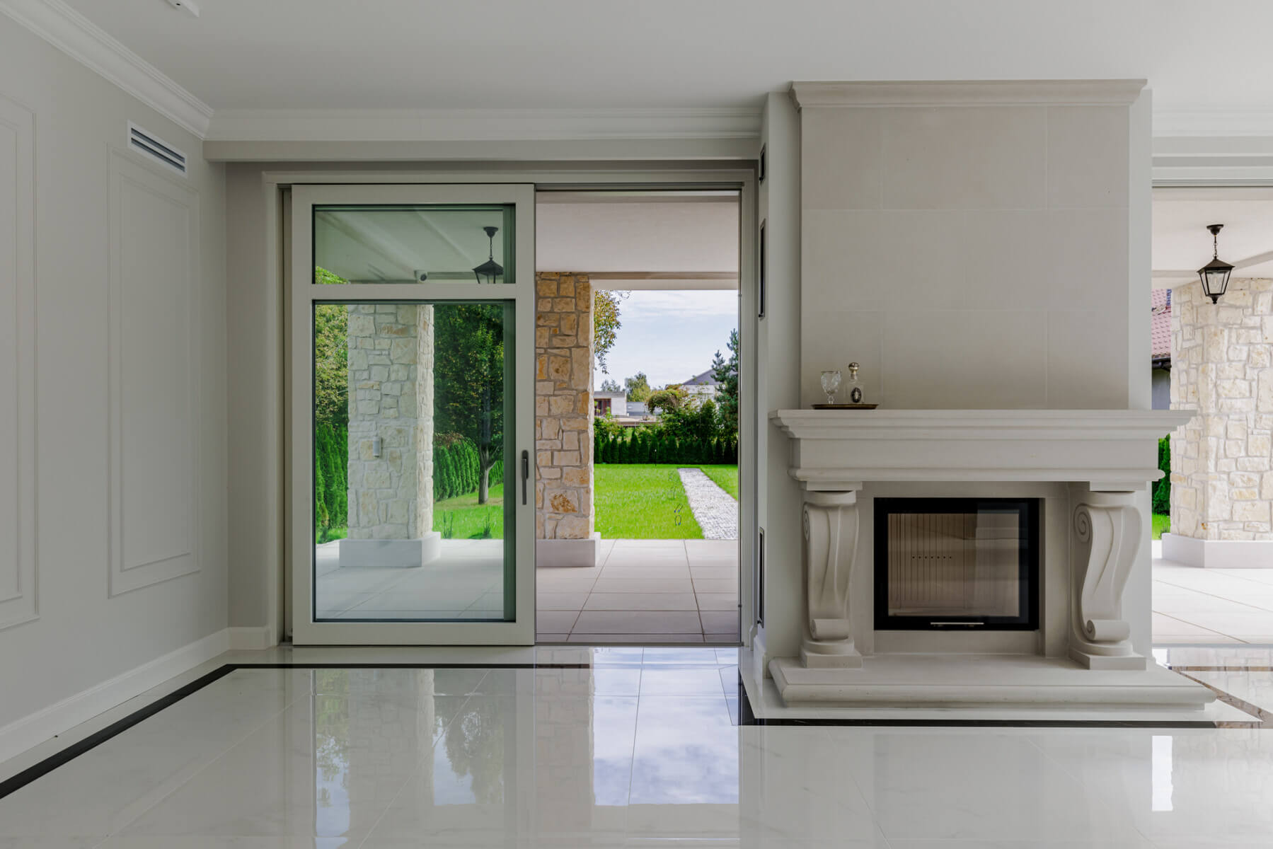 • przestronny, jasny salon z kominkiem, w którym z łatwością zaprojektujemy częścią jadalnianą i wypoczynkową;