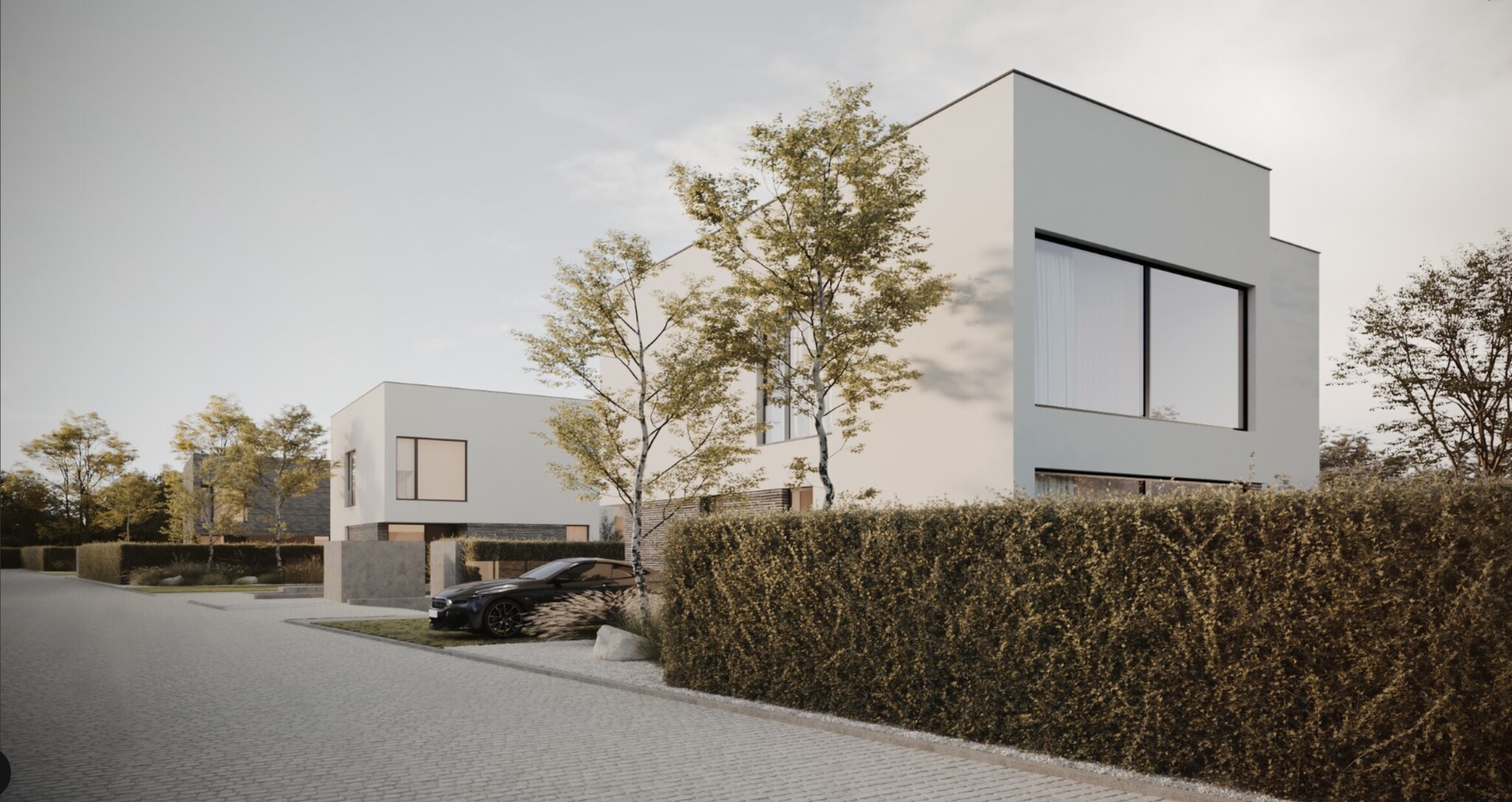 Każdy dom to dzieło sztuki użytkowej oparte na funkcjonalności i designie. W realizacji wykorzystano materiały tylko najwyższej jakości: cegłę, szkło, drewno, beton i aluminium. Abyś otrzymał to, co najlepsze: konsekwentny modernistyczny styl zachwycający w swej prostocie.