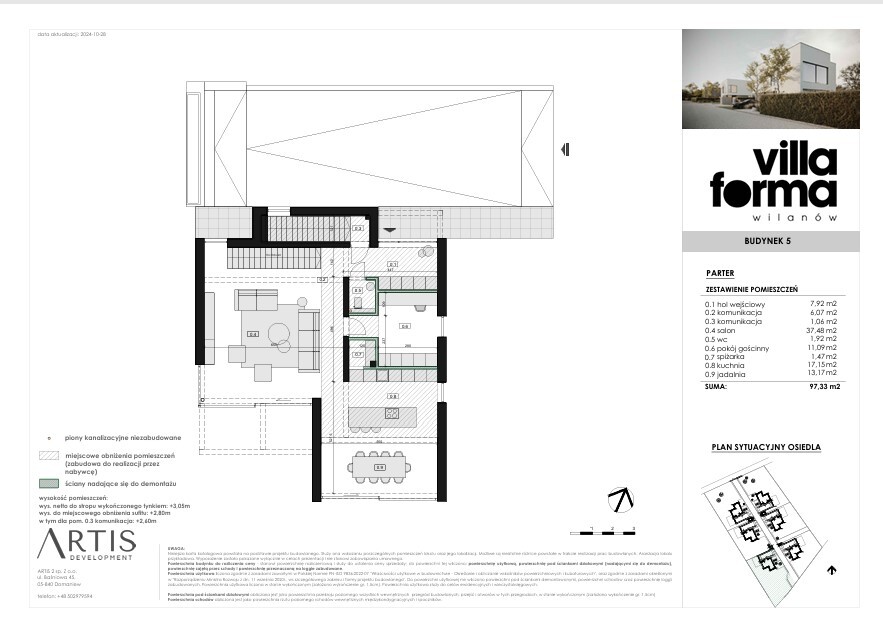 Kameralne osiedle 6 wolnostojących willi na Zielonym Wilanowie. Wyjątkowo duże działki od 1120 do 1580 m2, na których powstają domy o metrażach od 280 do 330 m2, od 4 do 7 pokoi.