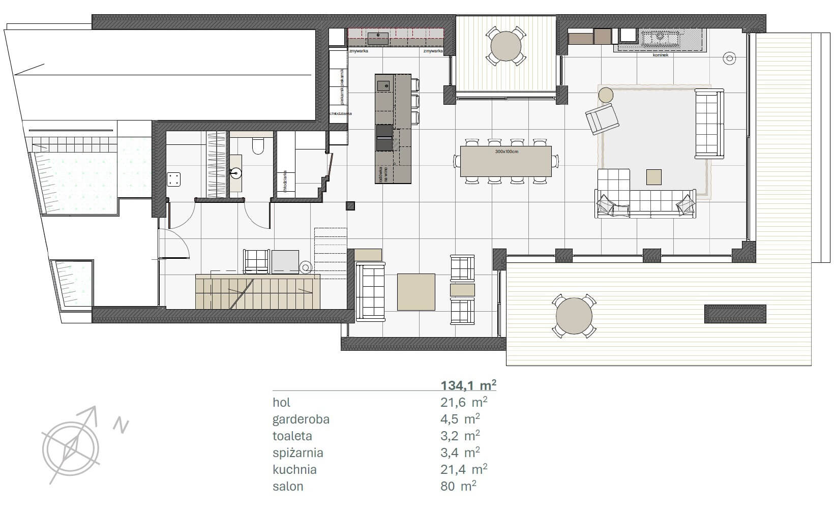 PARTER (134,1 m²) – STREFA DZIENNA Z WIDOKIEM NA PARK