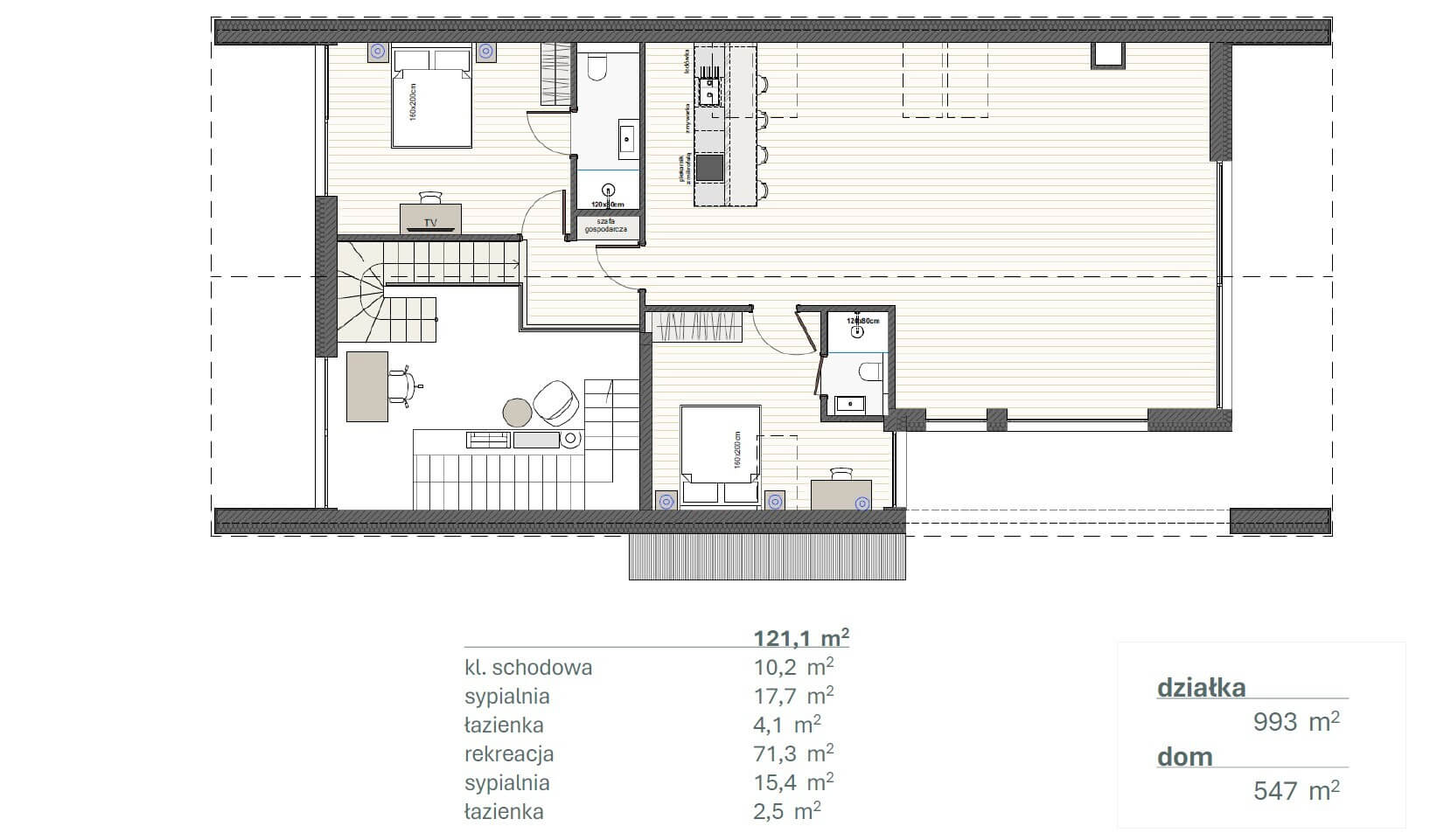 PIĘTRO 2 (121,1 m²) – KOMFORT PRYWATNY I REKREACJA