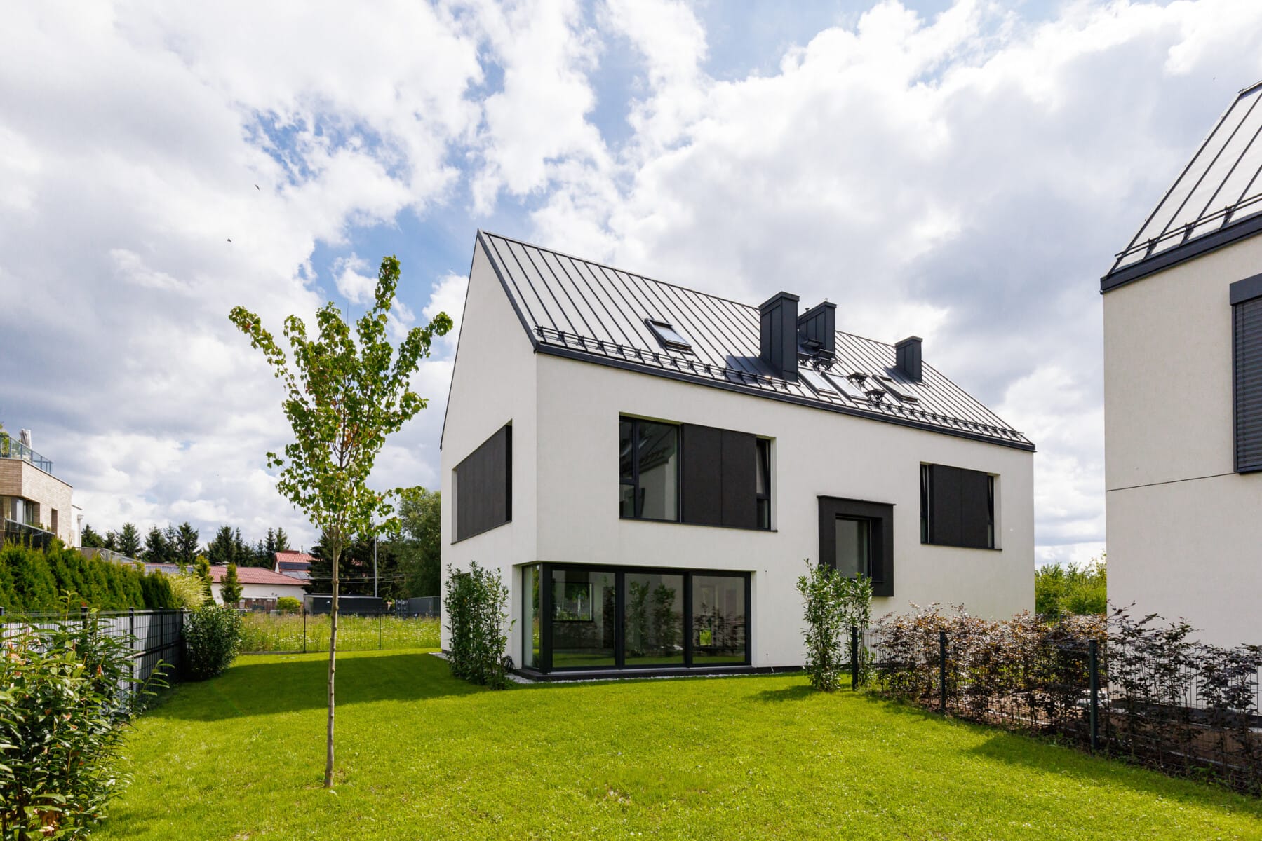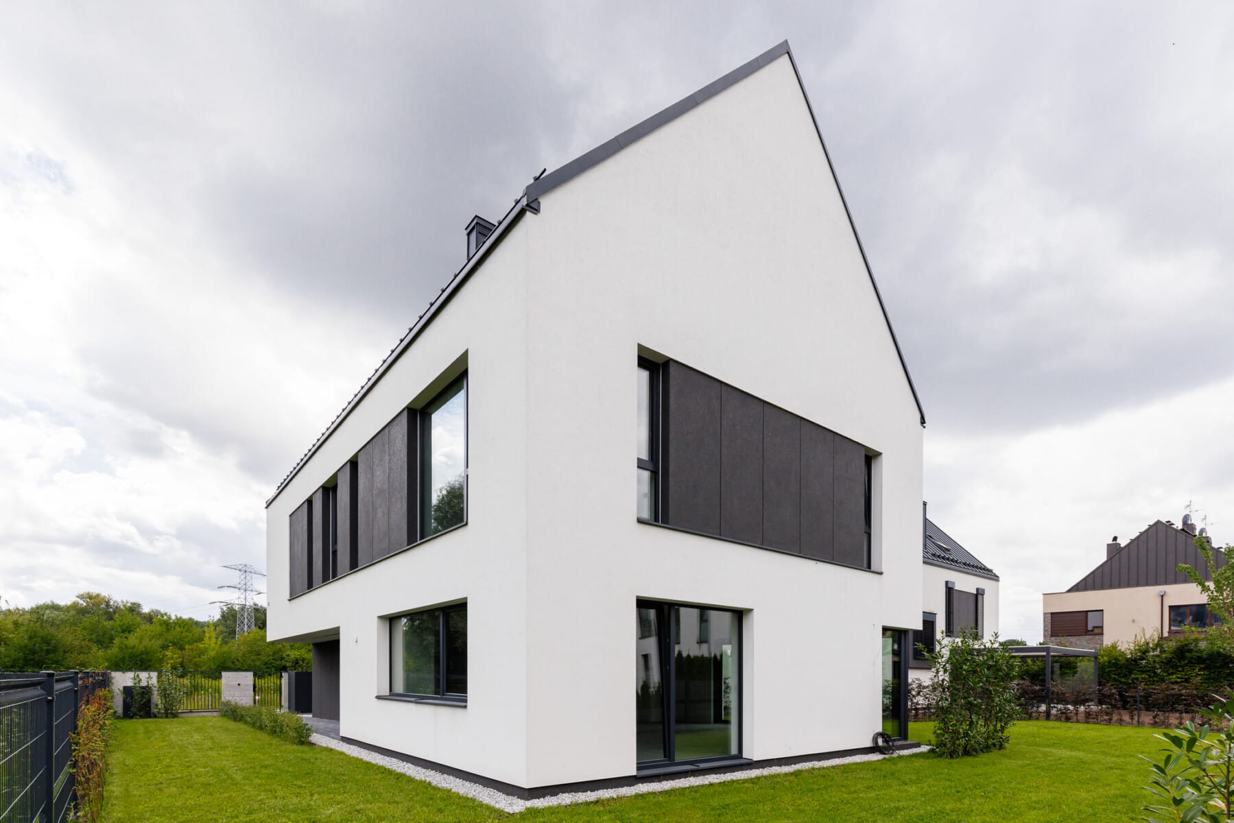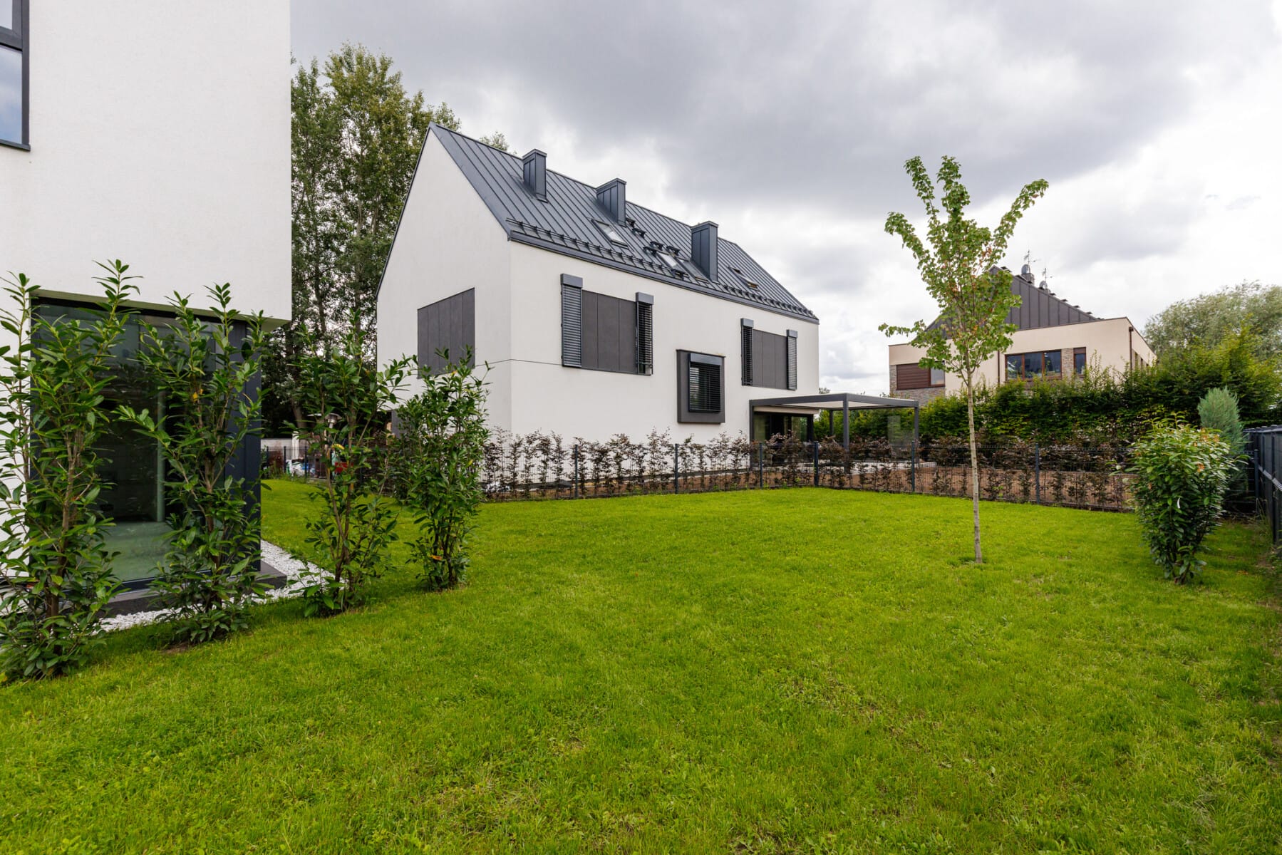 Doskonale położony, w bliskości rezerwatu przyrody Morysin – nowoczesny dom ze słoneczną działką i widokiem na zabudowę jednorodzinną i zieleń.